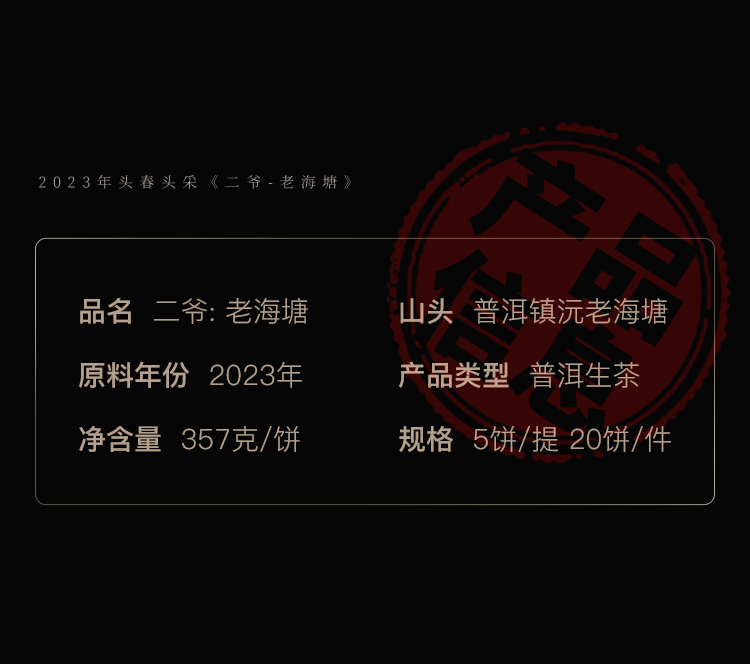 【二爷老海塘】2023年头春头采云南八大名茶之一普洱茶生茶357g/饼 拍5发6
