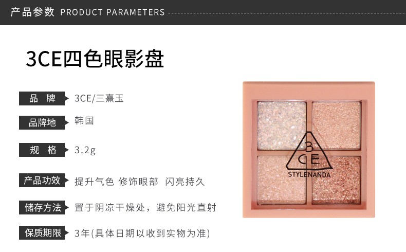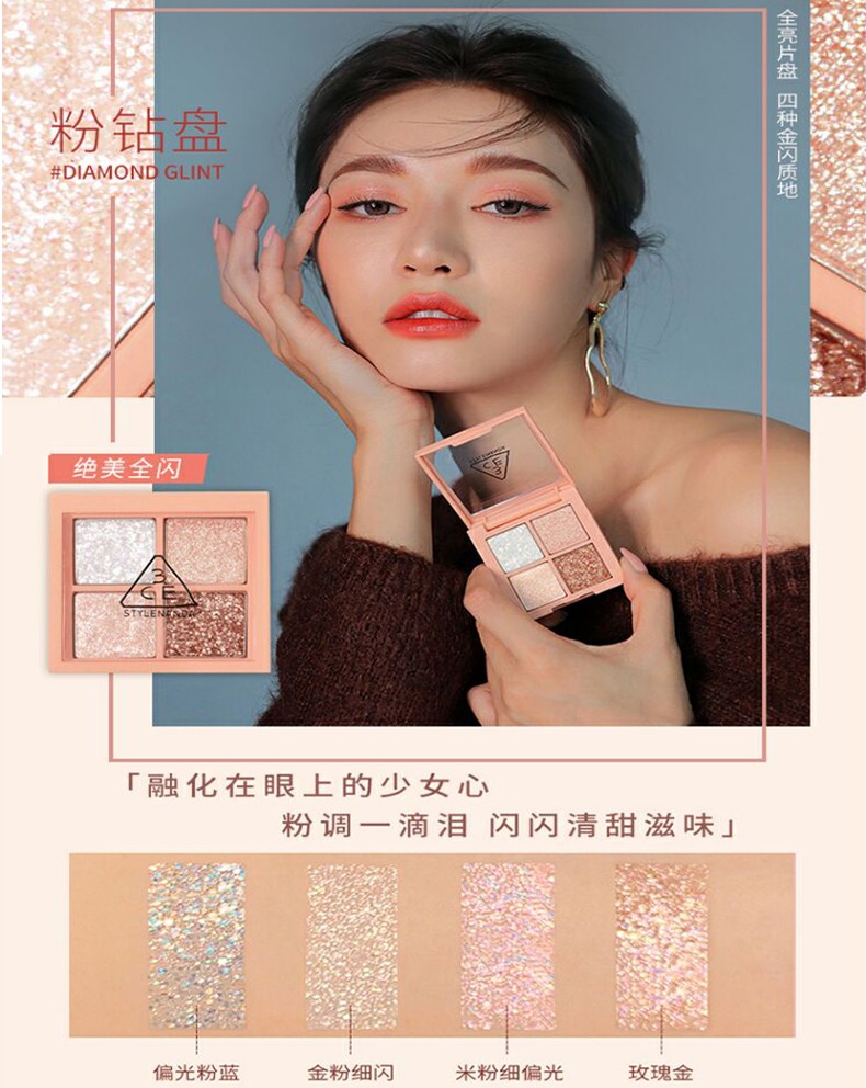 3CE 四色眼影盘 3.2G 粉钻盘#DIAMOND GLINT