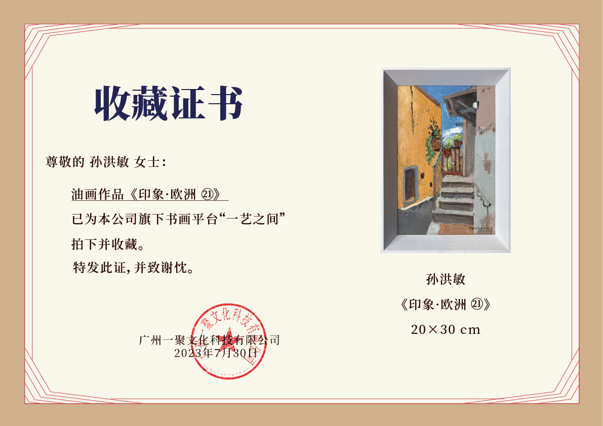 孙洪敏《印象-欧洲21》油画 20CMx30CM 约0.54平尺(已装框)【原作编号YH0031】