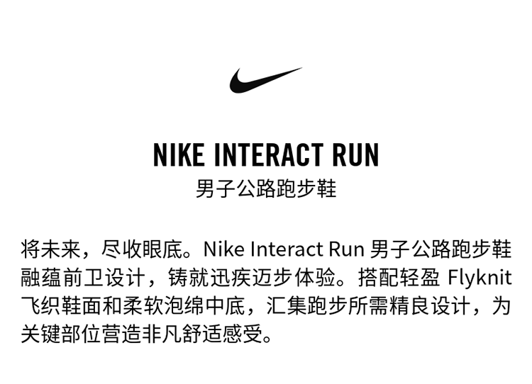 Nike耐克 INTERACT RUN男款轻便透气运动跑步训练鞋