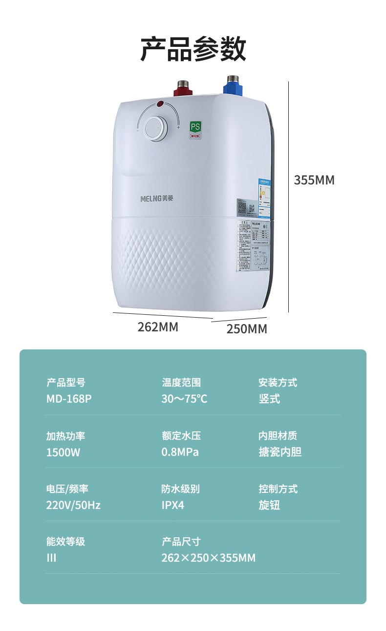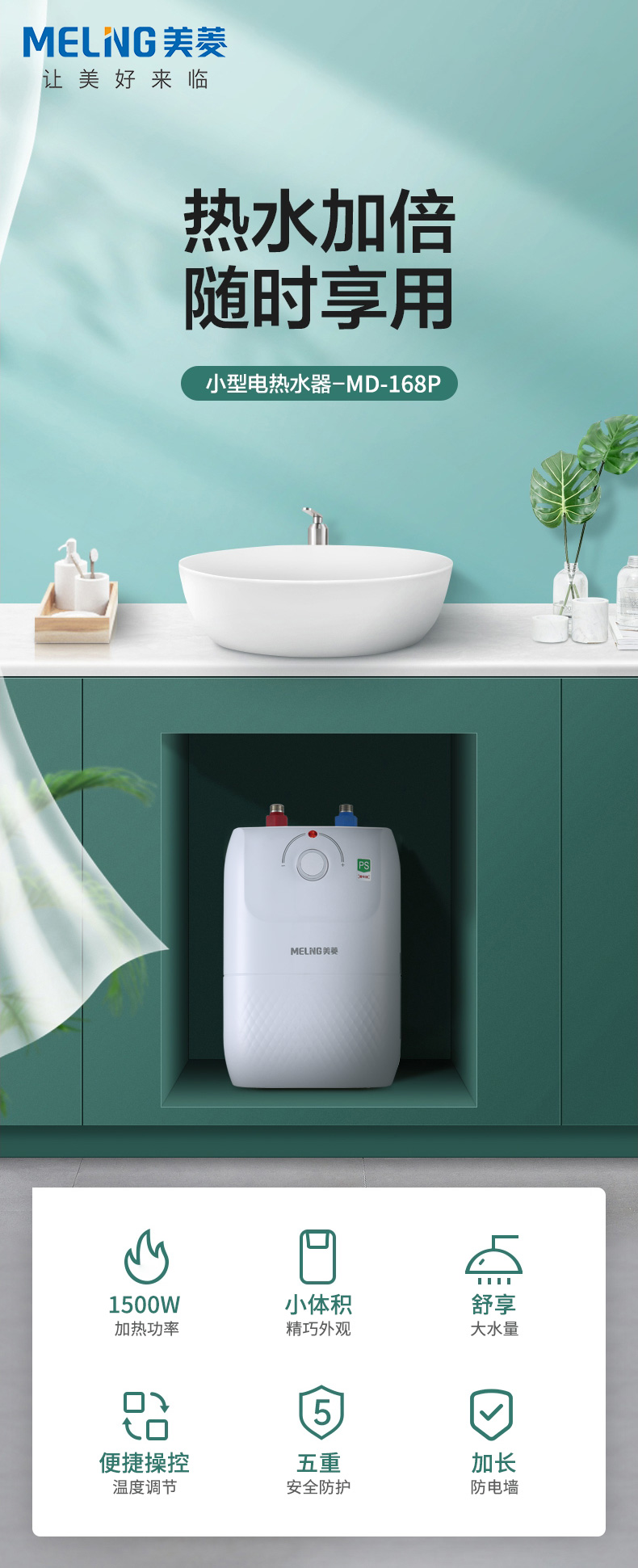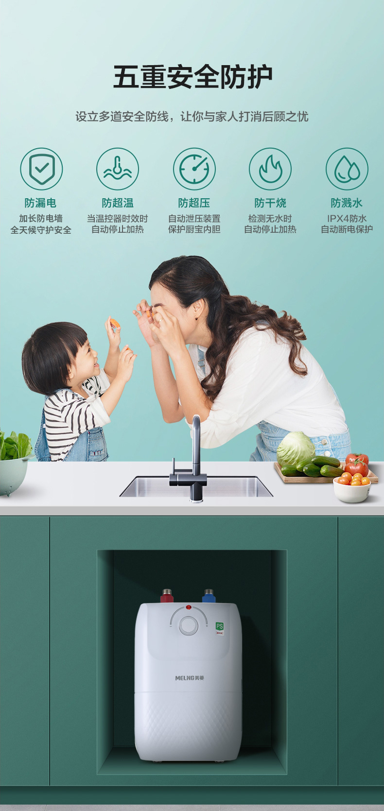 美菱(MeiLing) 6.8升 储水式小厨宝 1500W速热大容量迷你电热水器 内置防电墙镁棒 MD-168P*