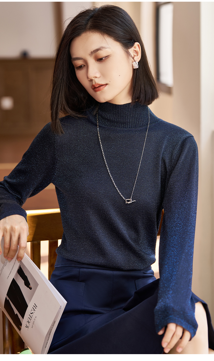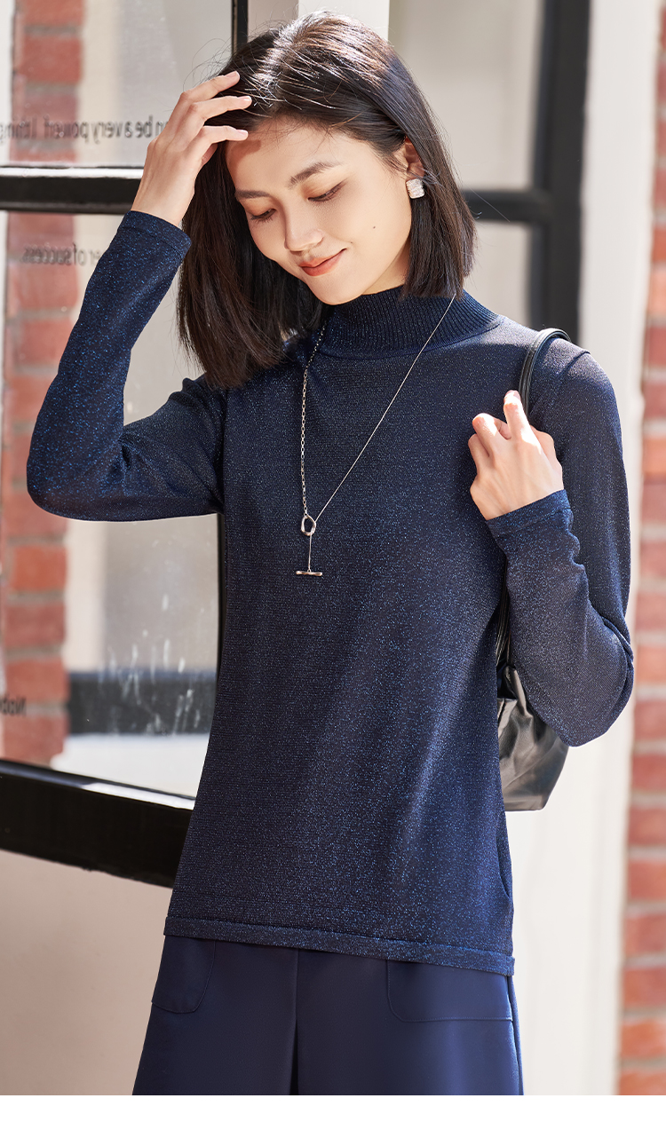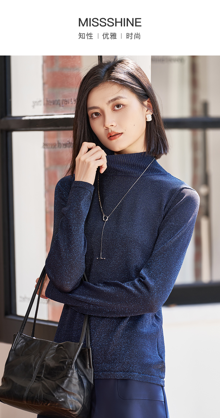 剩M 米思阳2026春季新品【半高领打底针织衫】春季时尚通勤百搭套头亮丝细闪质感针织衫毛衣1665