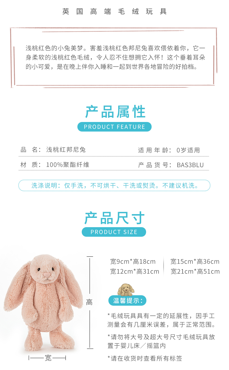 Jellycat 害羞系列 邦尼兔 浅桃红