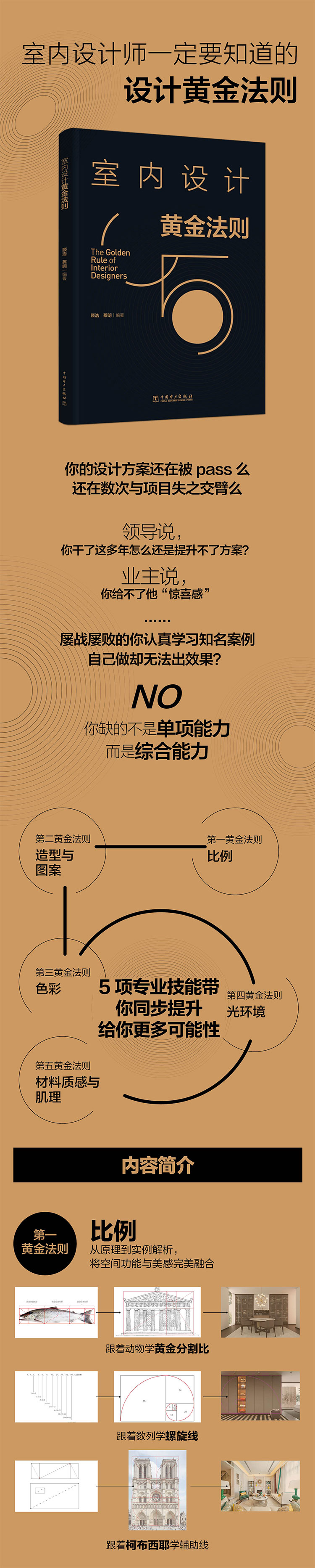 本书以体现室内设计实践技巧为基准,体例完整,主要从比例、造型与图案、色彩、光环境、材料5 个方面以图文并茂的形式阐述了设计方法,帮助设计师快速实现设计想法。同时,书中涉及一些设计审美和设计管理的内容,为设计师未来朝着不同方向发展做准备。