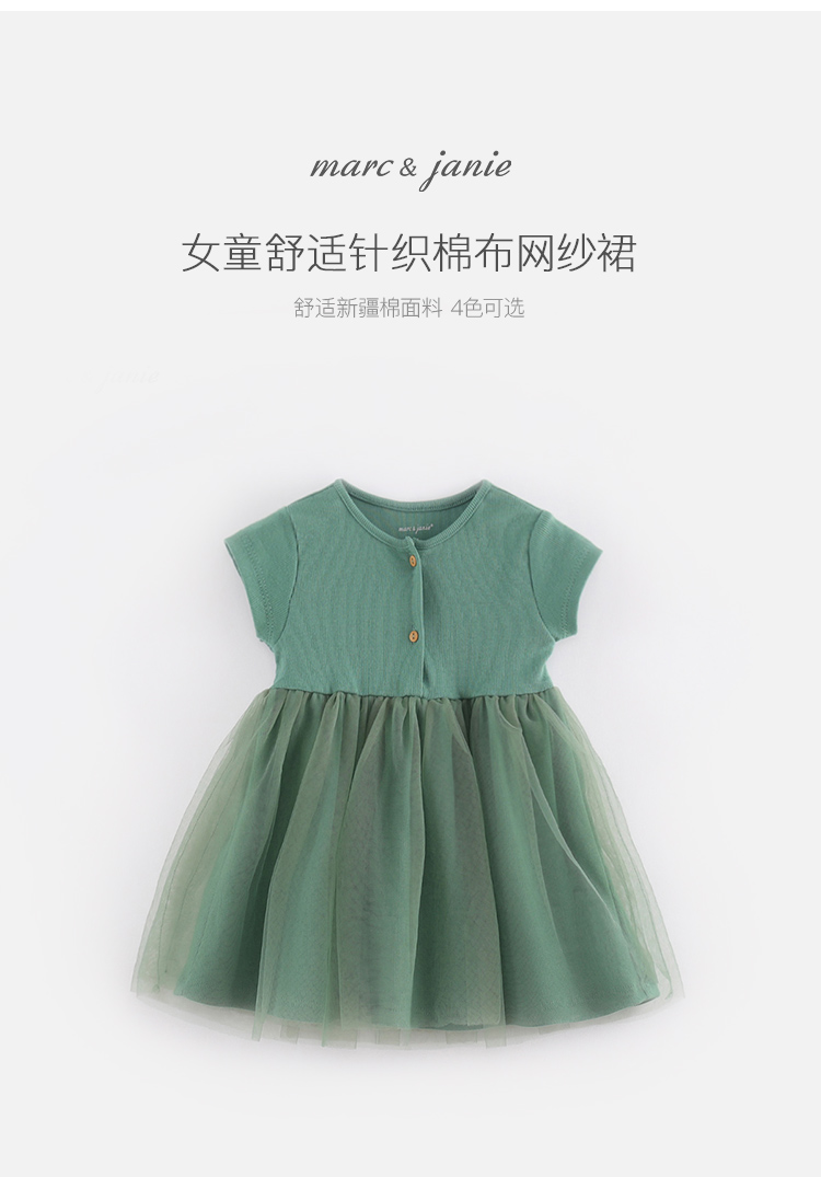 马克珍妮宝宝夏装 女童薄款针织网纱连衣裙 儿童裙子220808