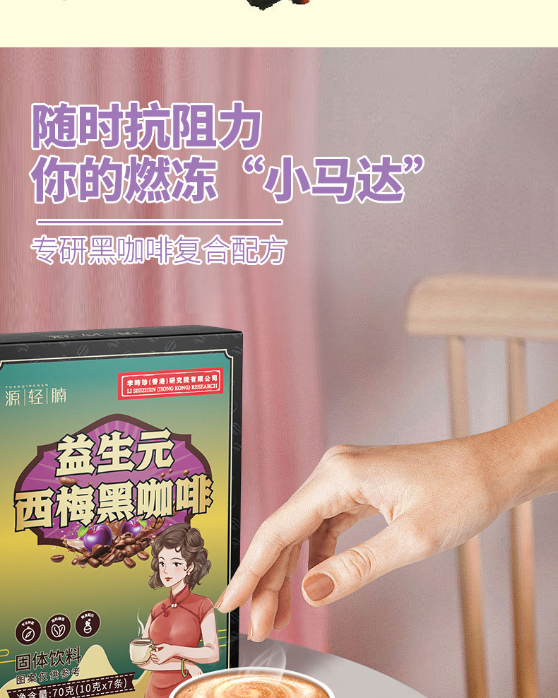 【口感醇厚!益生元西梅黑咖啡】甄选优质好原料,口感醇厚,添加益生元+西梅,益生元黑咖啡固体饮料L
