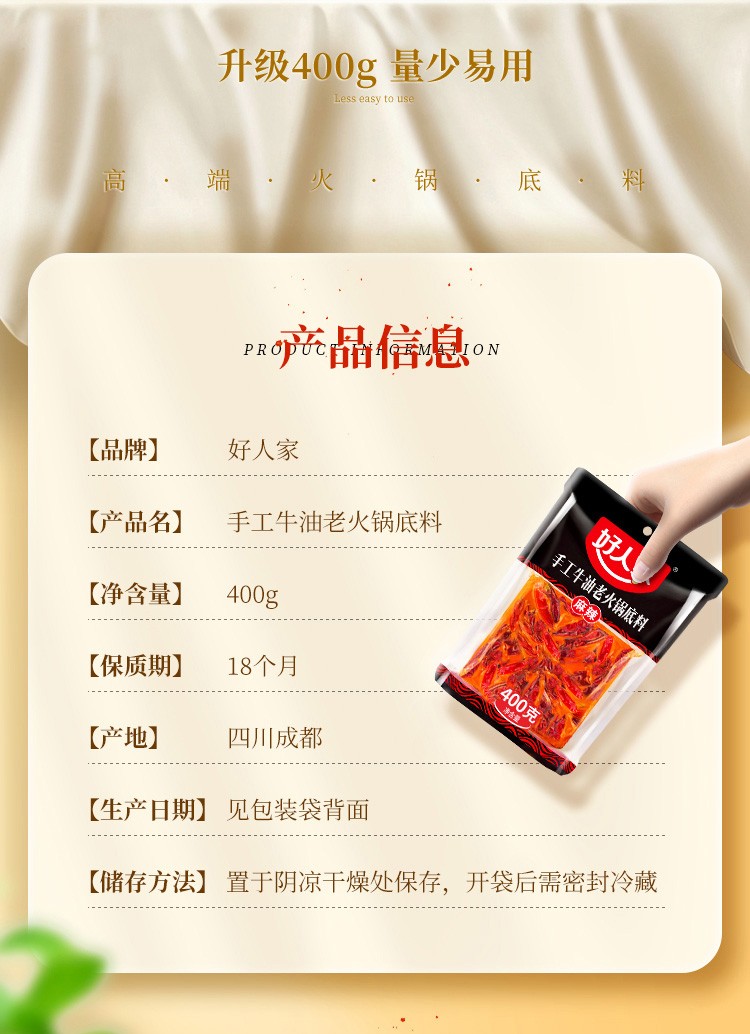 好人家手工牛油老火锅底料麻辣400克