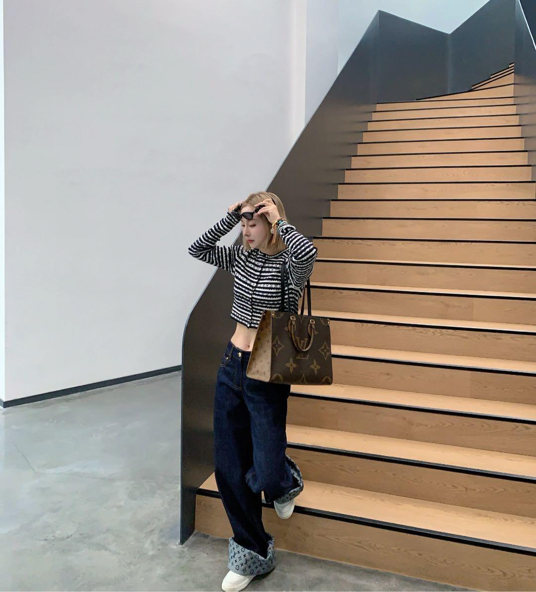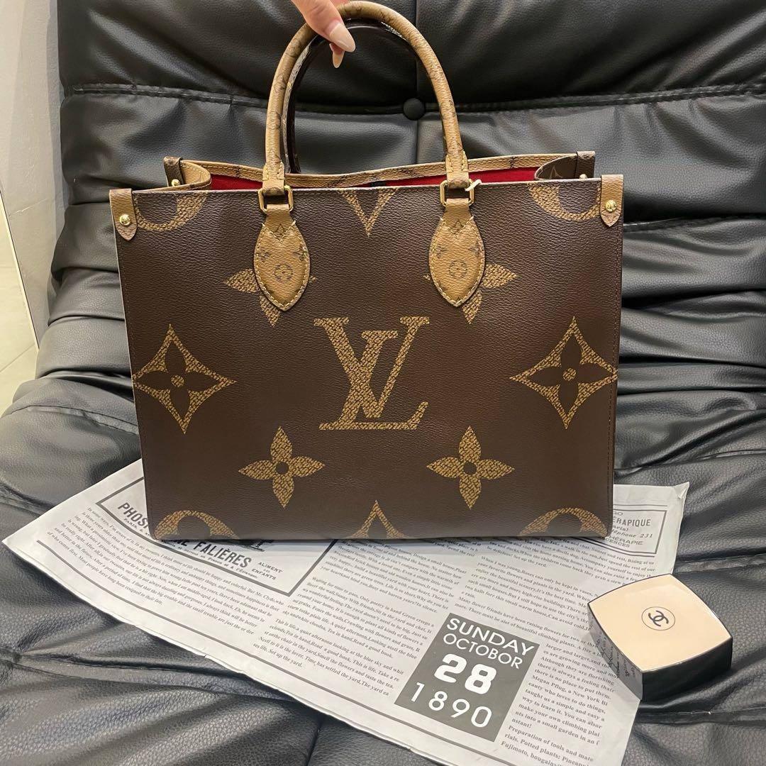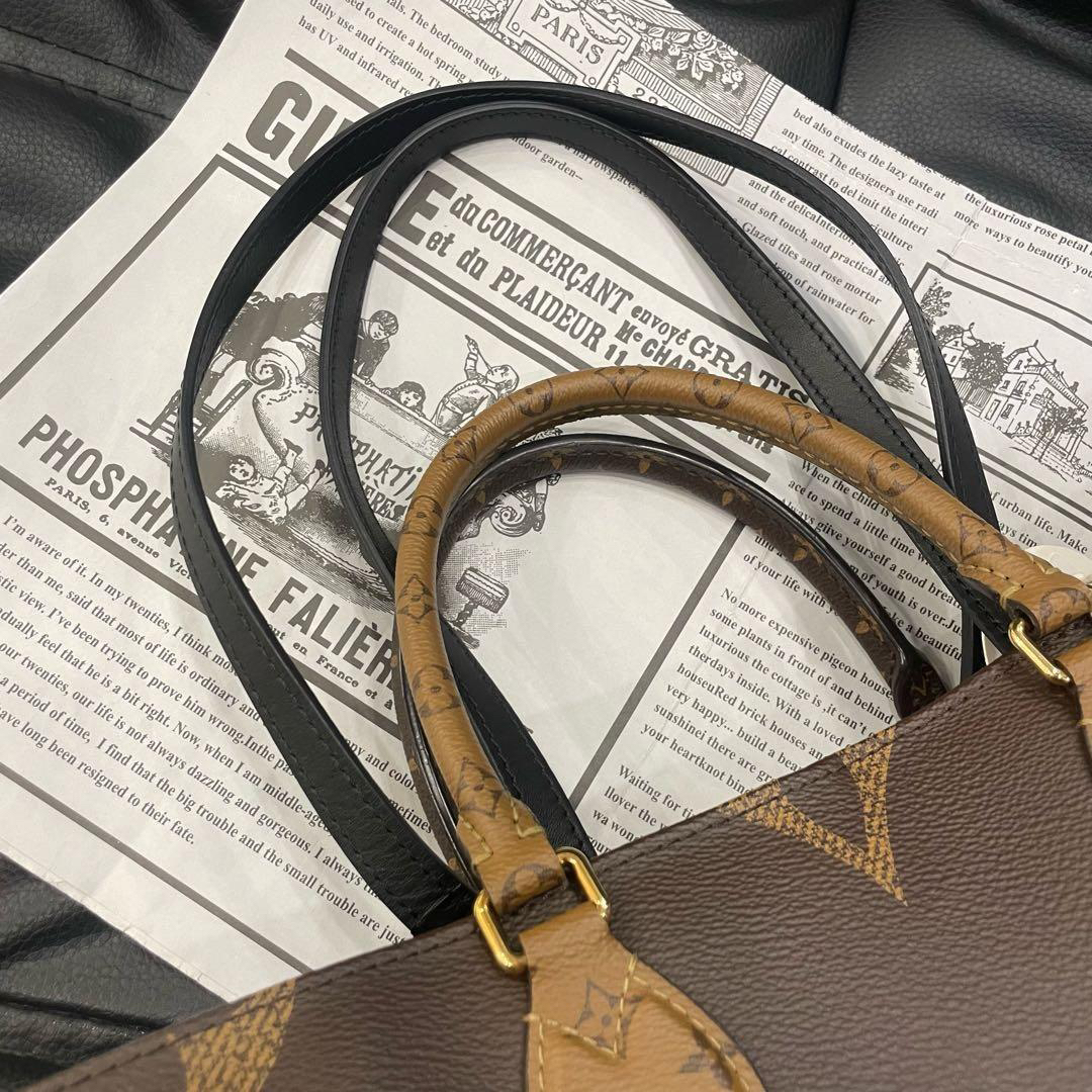 【商品詳情】正品二手 LV on the go 中号 老花拼色 单肩包🥑95新 33×26。包身正常使用感。双面可背一包两用