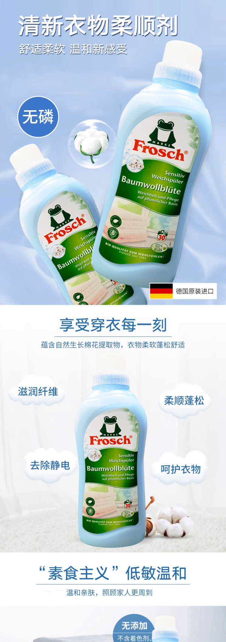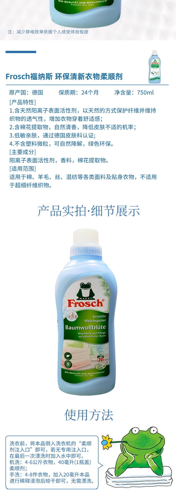 德国进口Frosch福纳丝环保清新衣物柔顺剂750ml