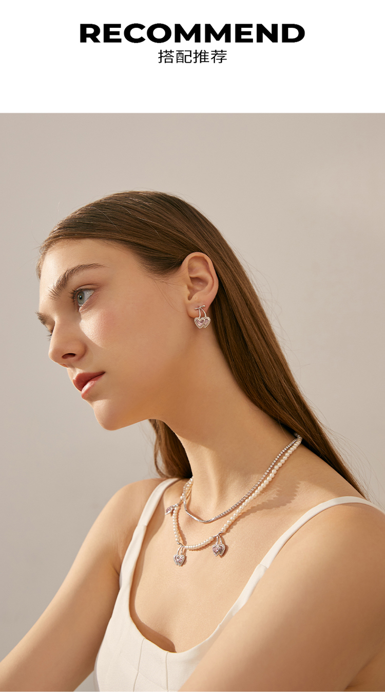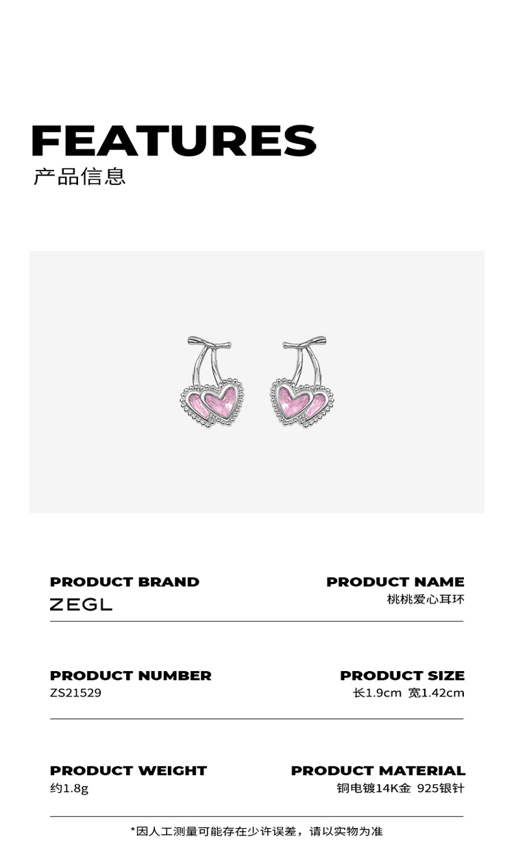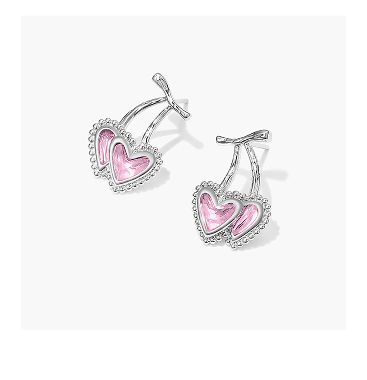 ZEGL设计师樱桃爱心耳环女2022年新款潮耳钉小众设计感银针耳饰品