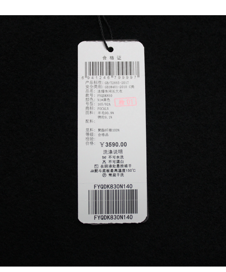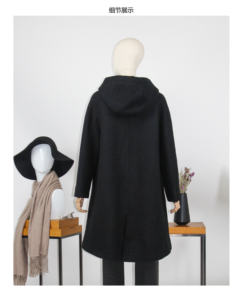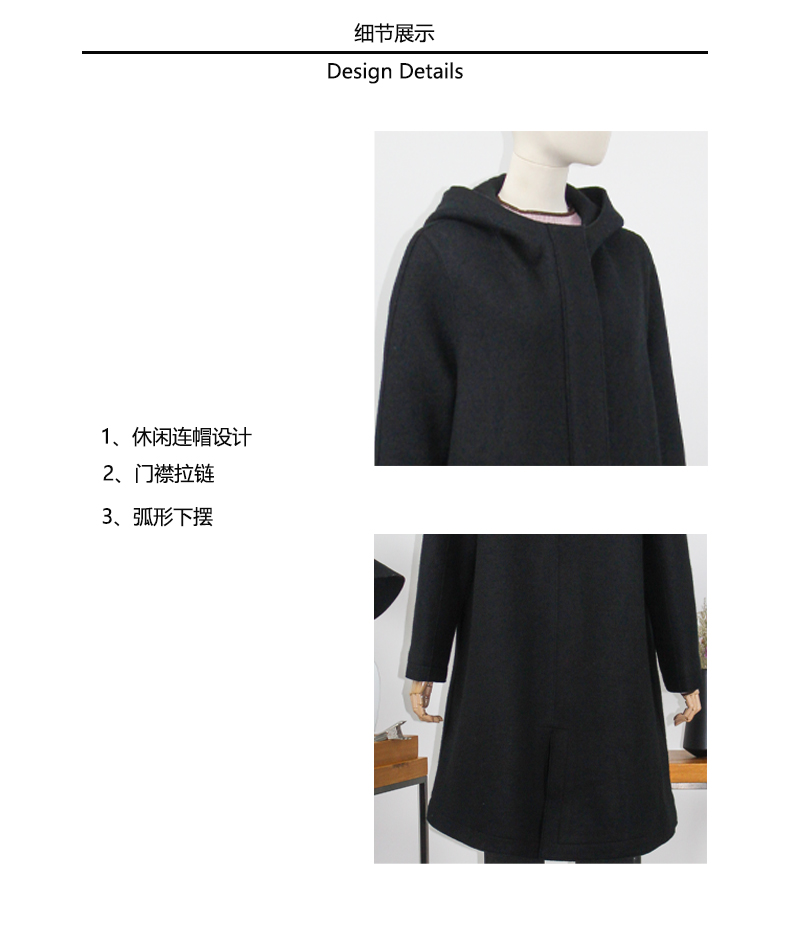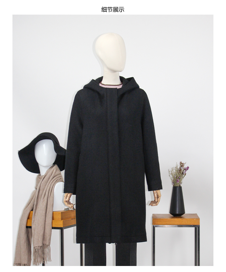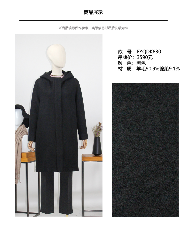 FOCALS福柯斯冬季新款长款纯色连帽拉链羊毛大衣外套FYQDK830N1