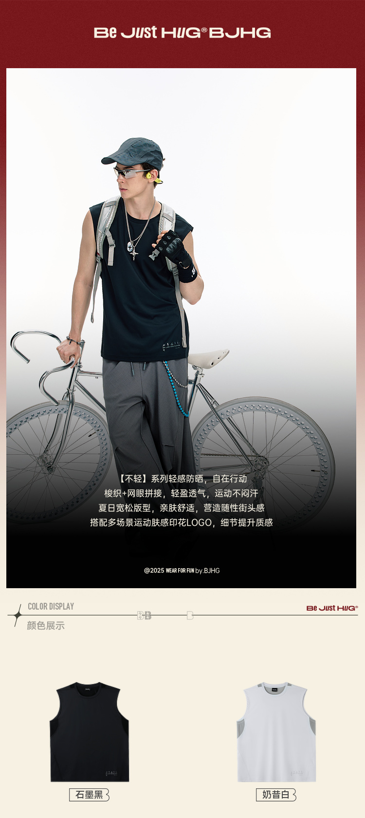 BJHG不计后果 凉感防晒背心男款夏季宽松户外运动轻盈透气无袖t恤