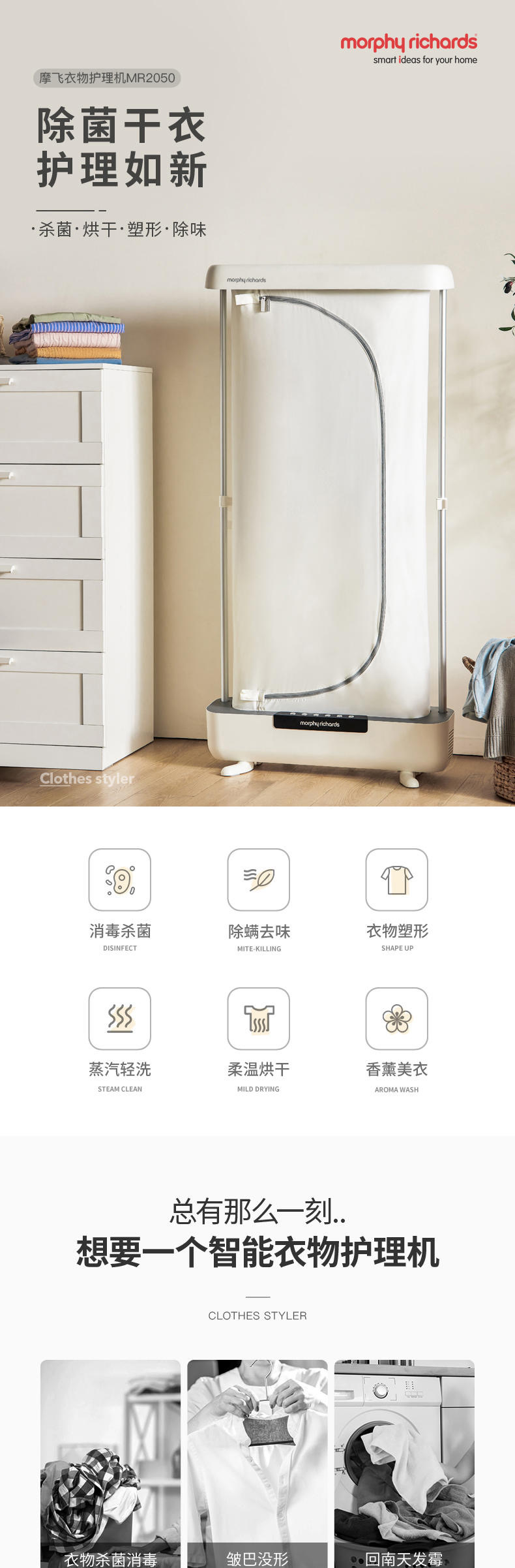 英国摩飞烘干机家用蒸汽杀菌盒MR2050全自动衣物护理小型干衣机