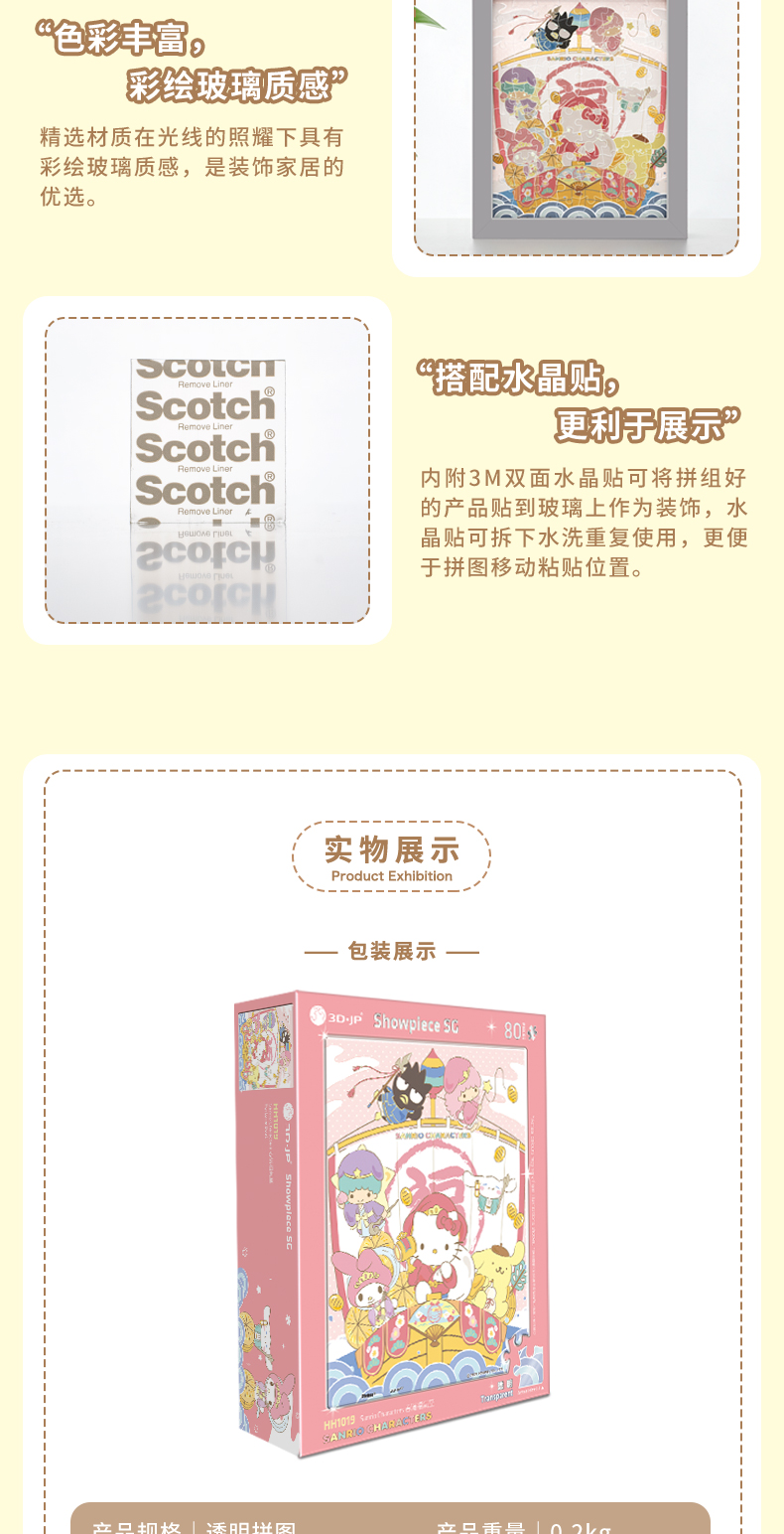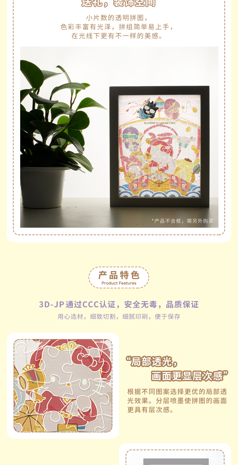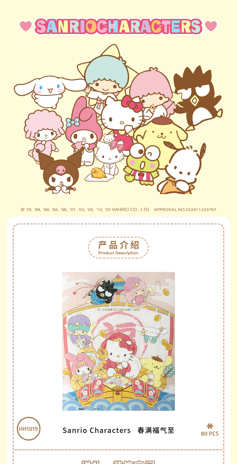 【折扣商品 不退不换】80片 透明平面拼图 塑料拼图 HH1019 Sanrio Characters 春满福气至