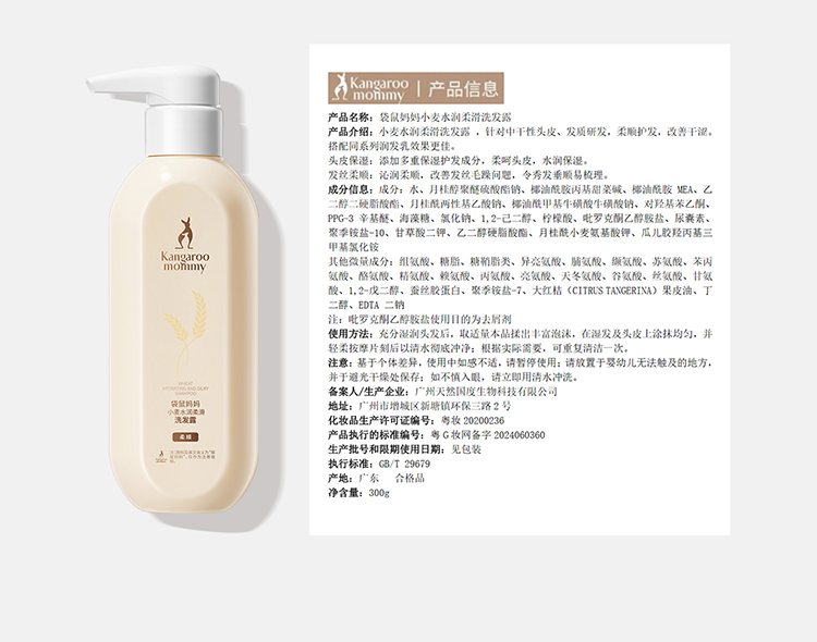 【准孕妇洗发露】 头皮高保湿护理 蓬松柔顺 小麦水润柔滑洗发露300g(柔顺)