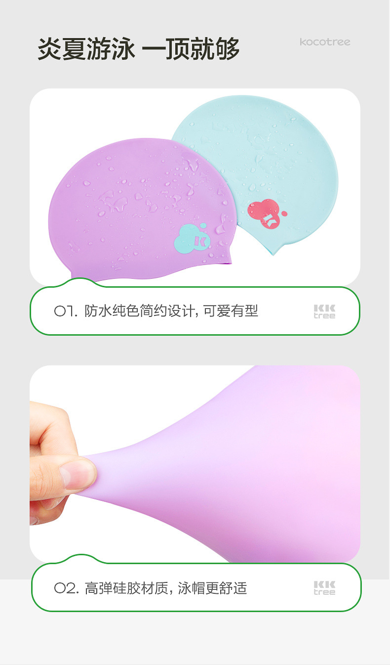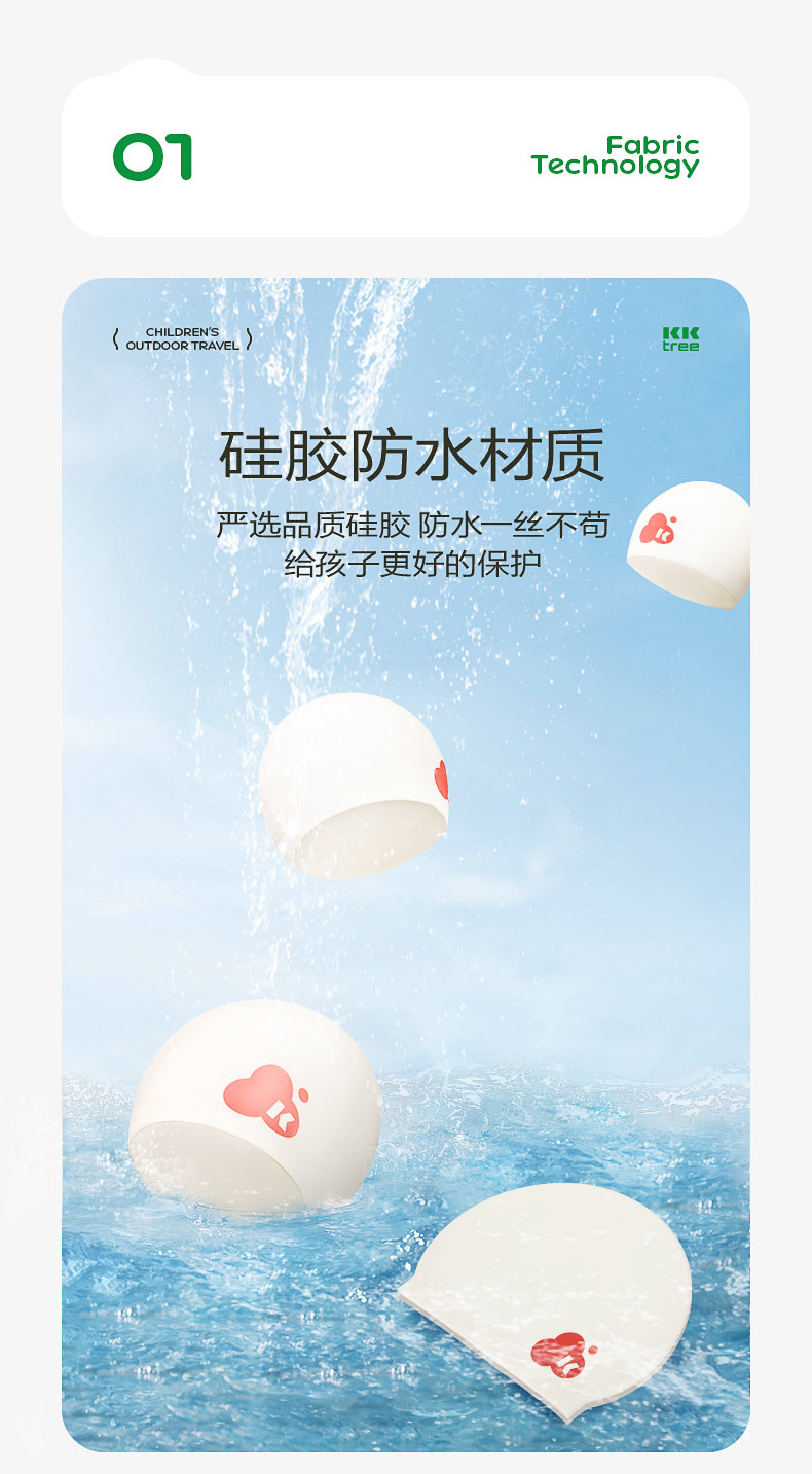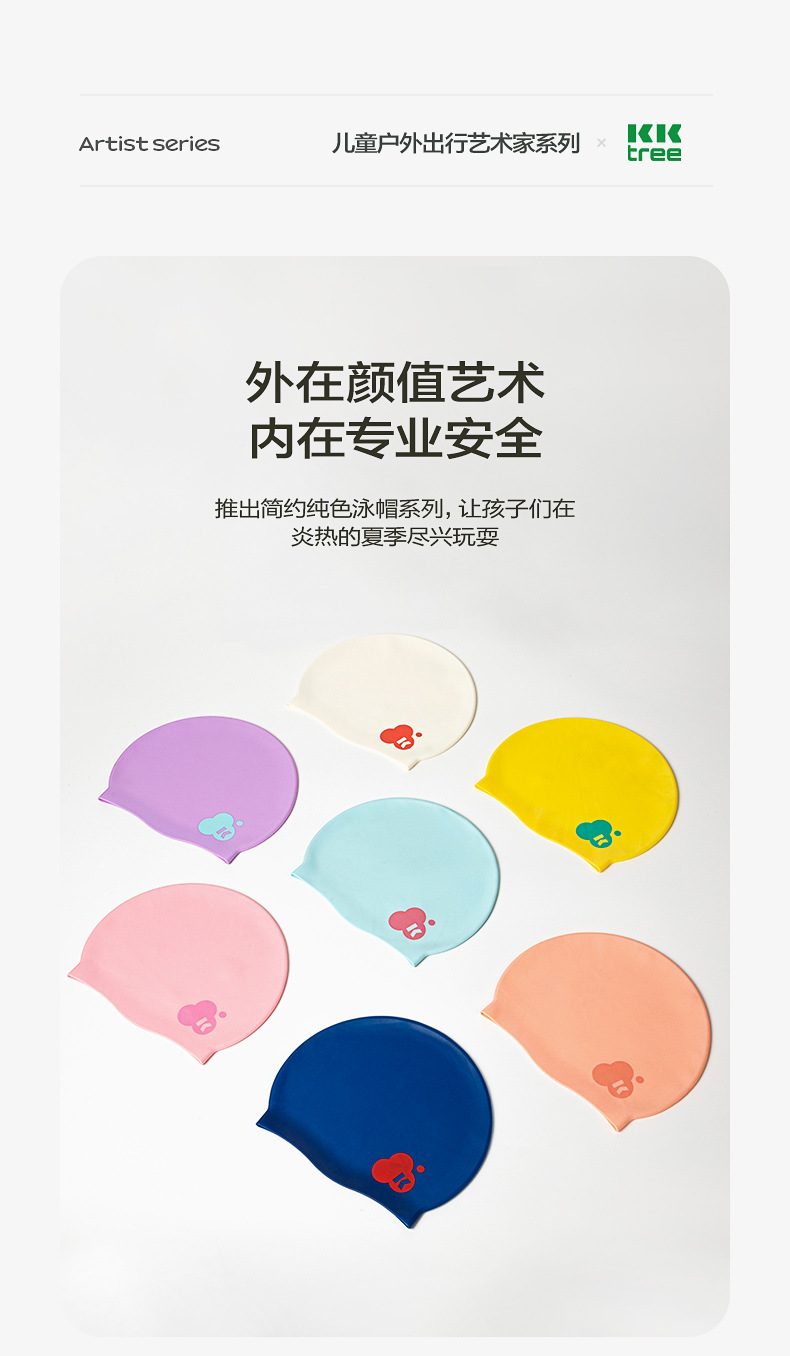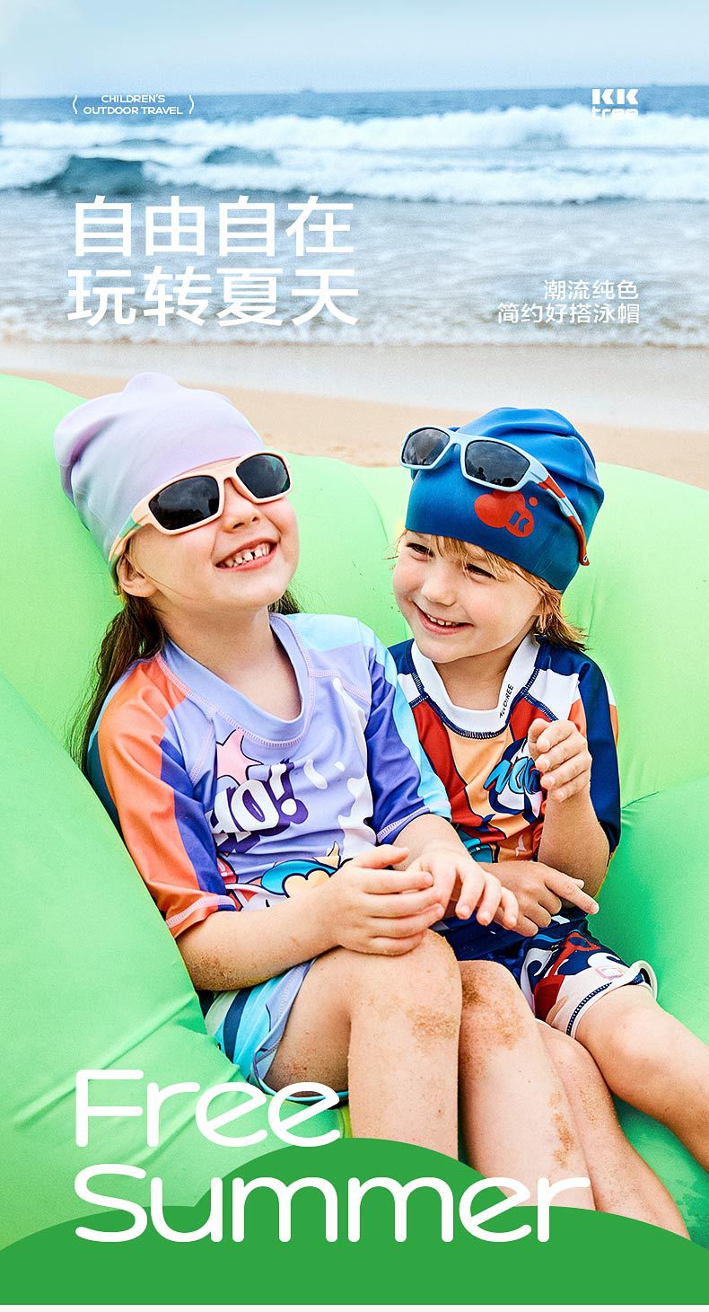 KK树儿童泳帽硅胶防水护耳不勒头男女孩游泳装备防晒游泳帽子