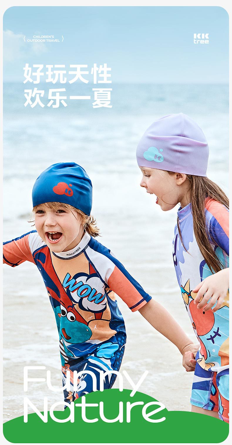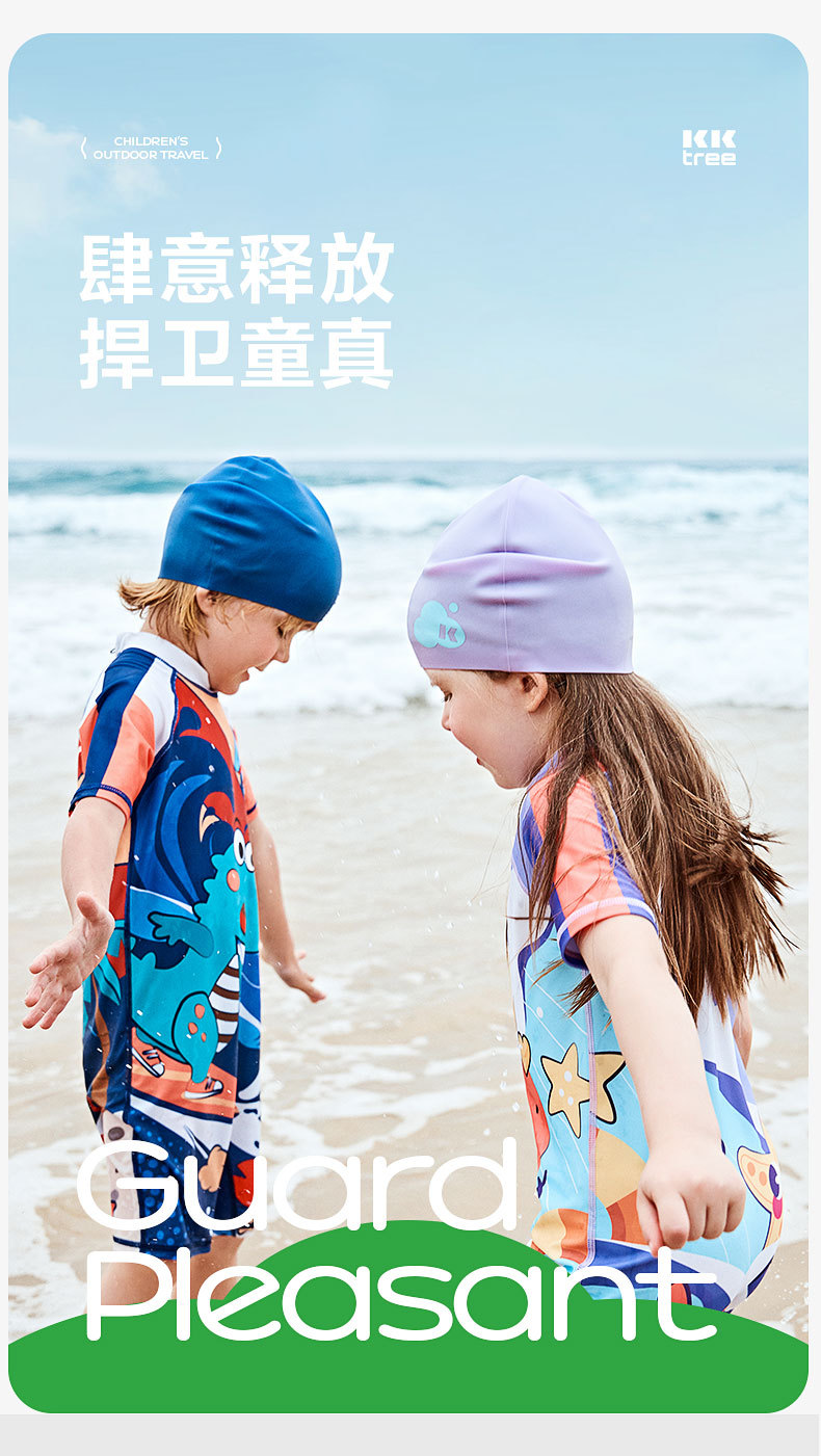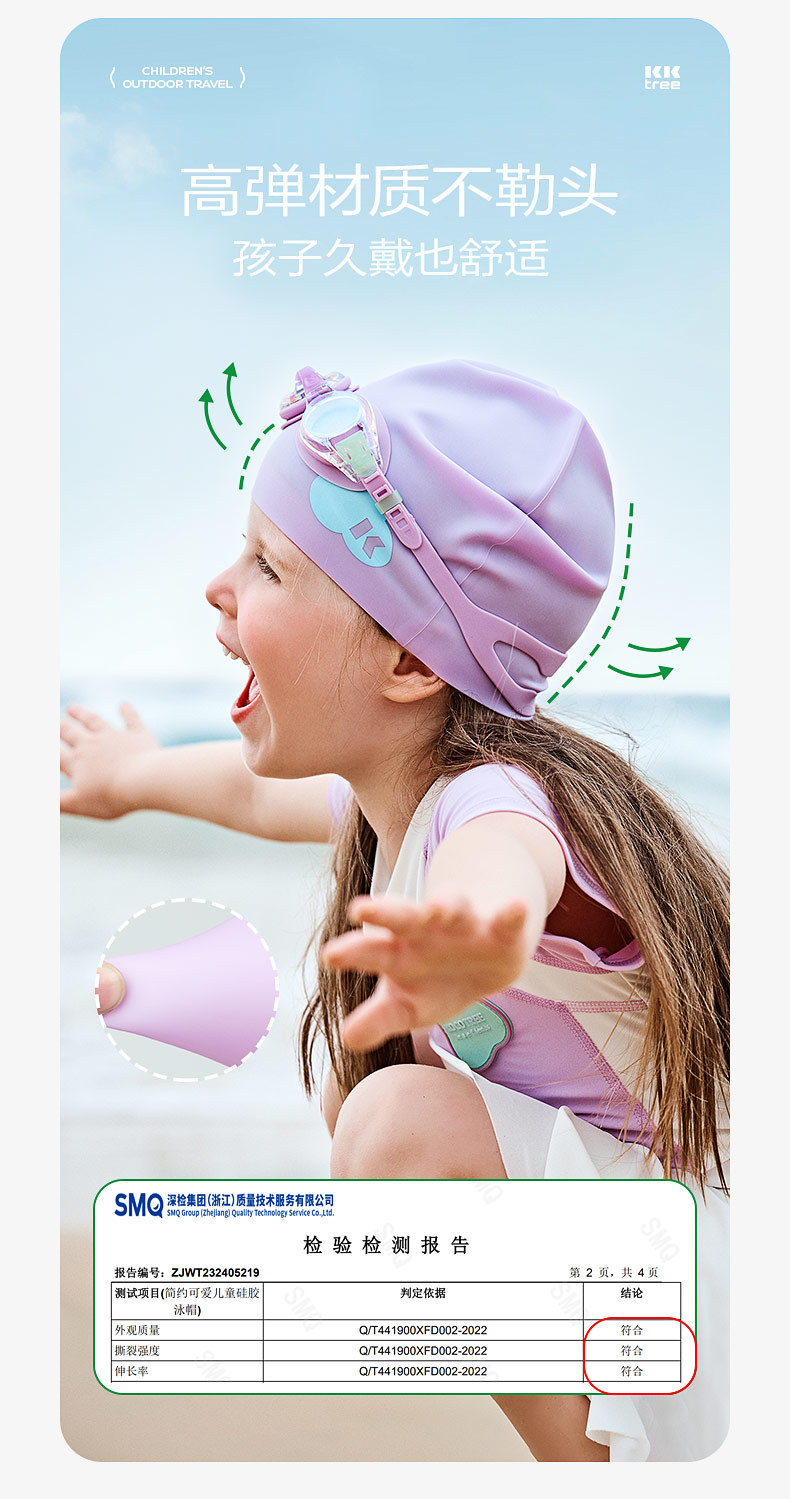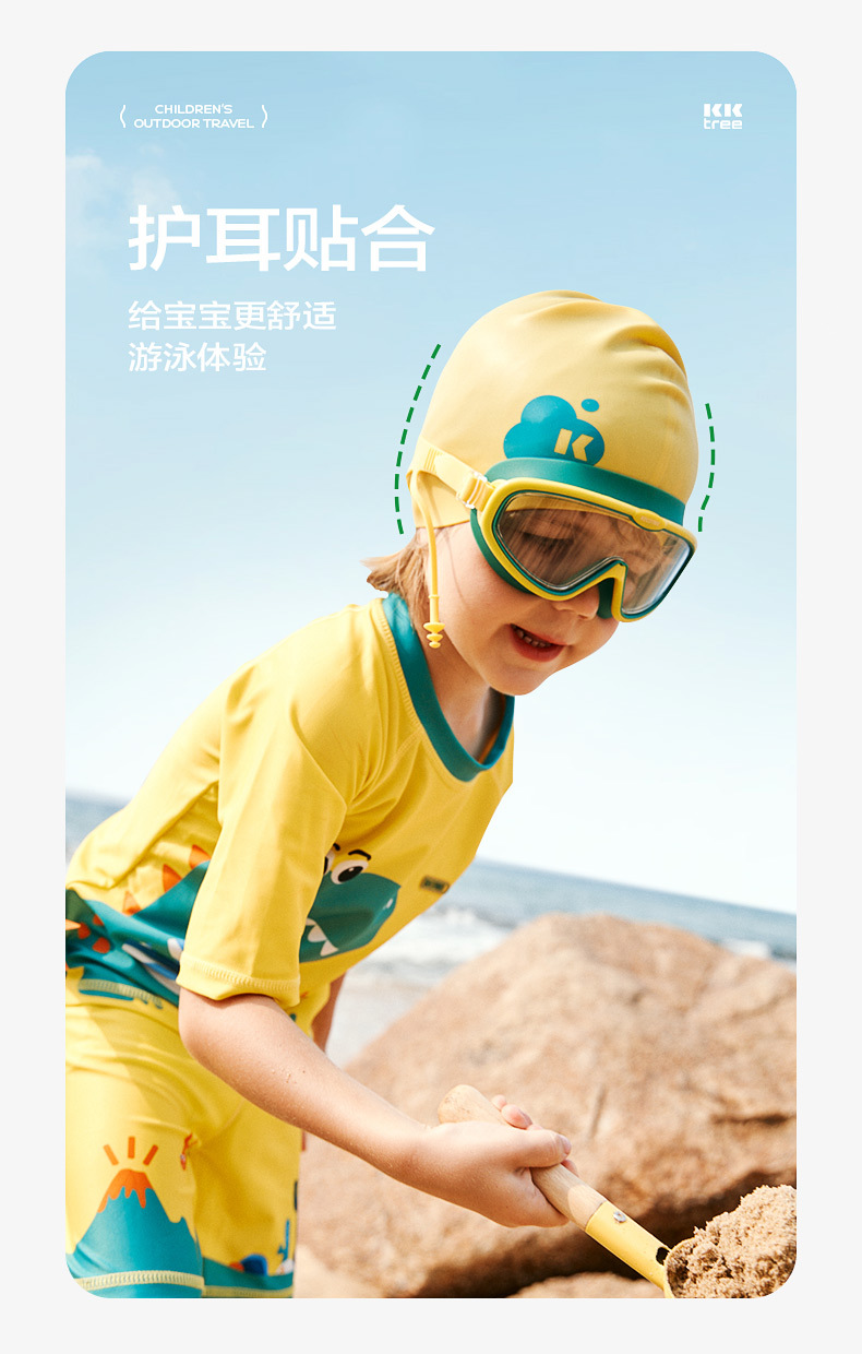 KK树儿童泳帽硅胶防水护耳不勒头男女孩游泳装备防晒游泳帽子