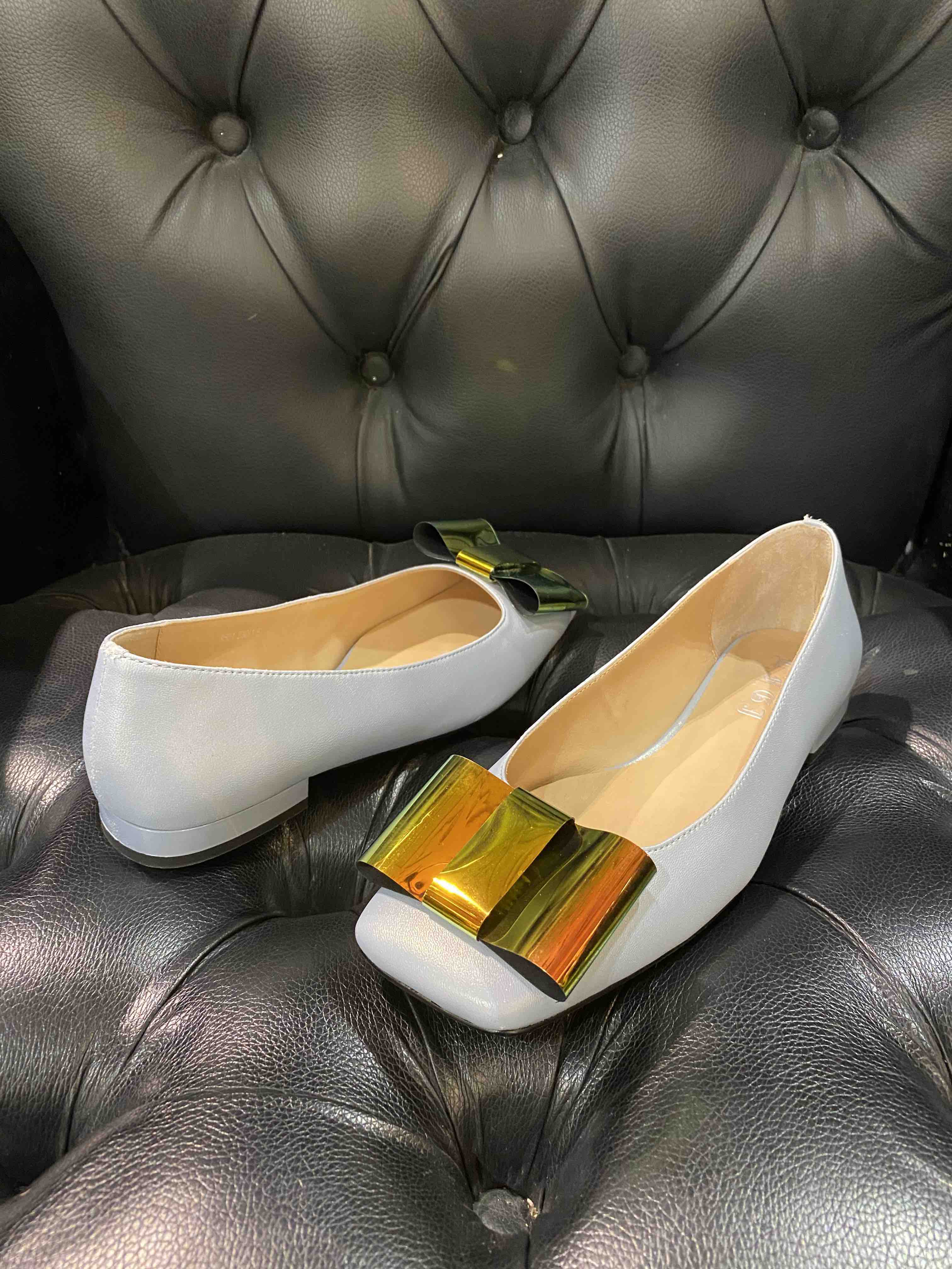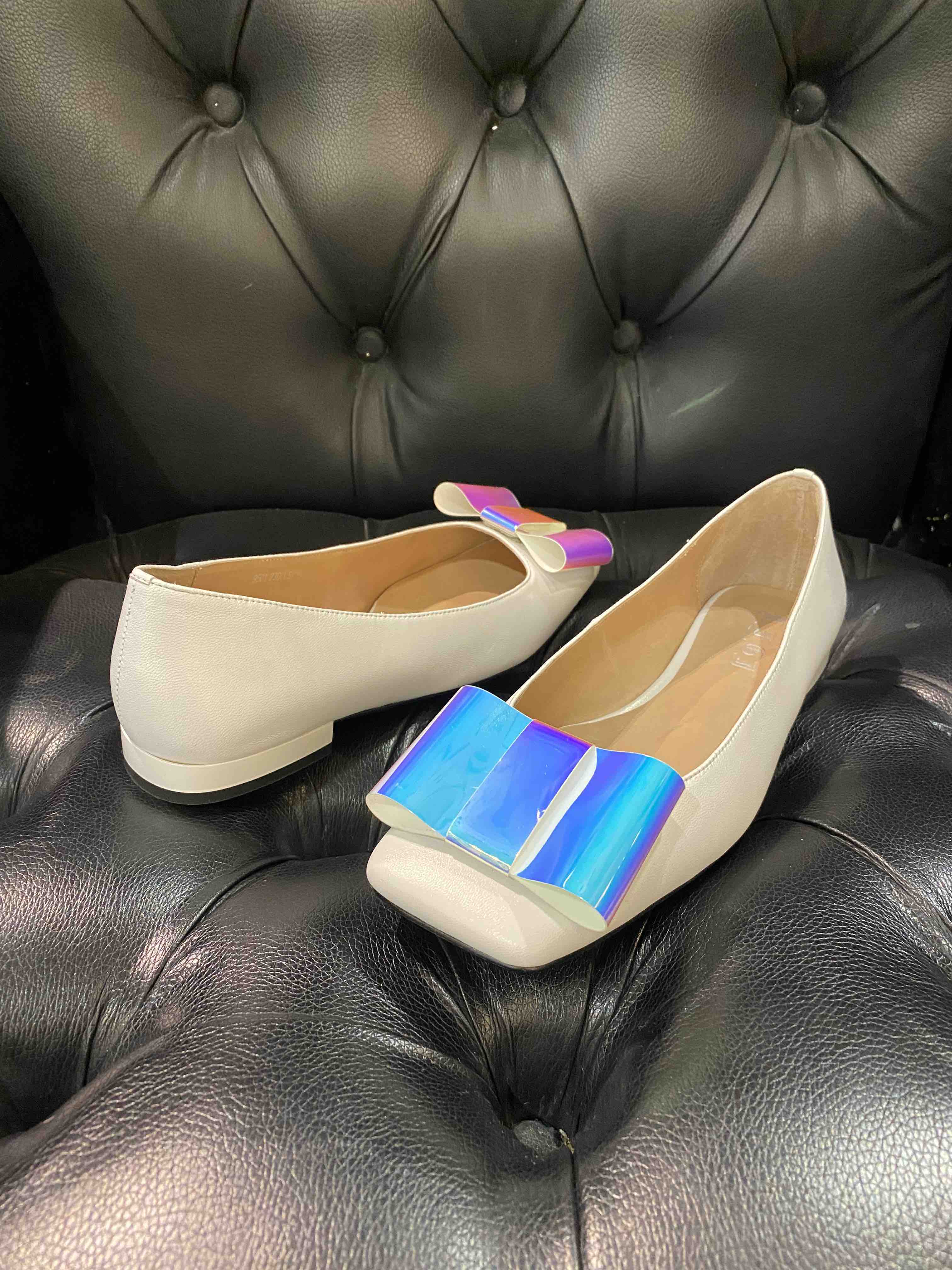 LFGJ 9501 平底蝴蝶结方头羊皮单鞋