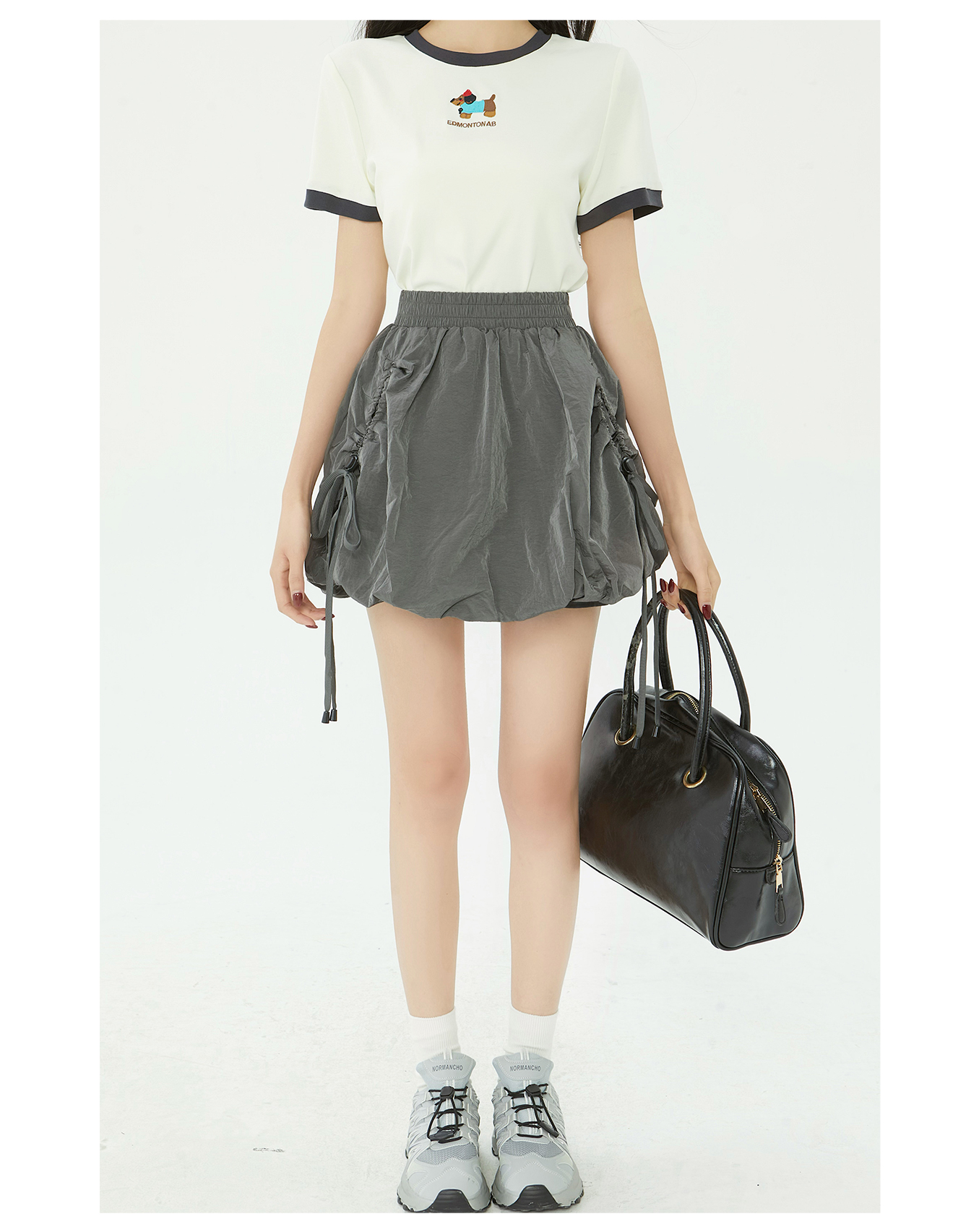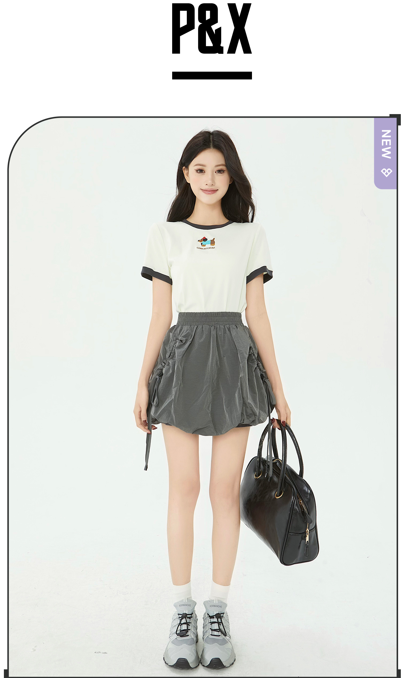 P&X设计师2025夏季新款甜美时尚花苞蓬蓬半身短裙825207330 灰色