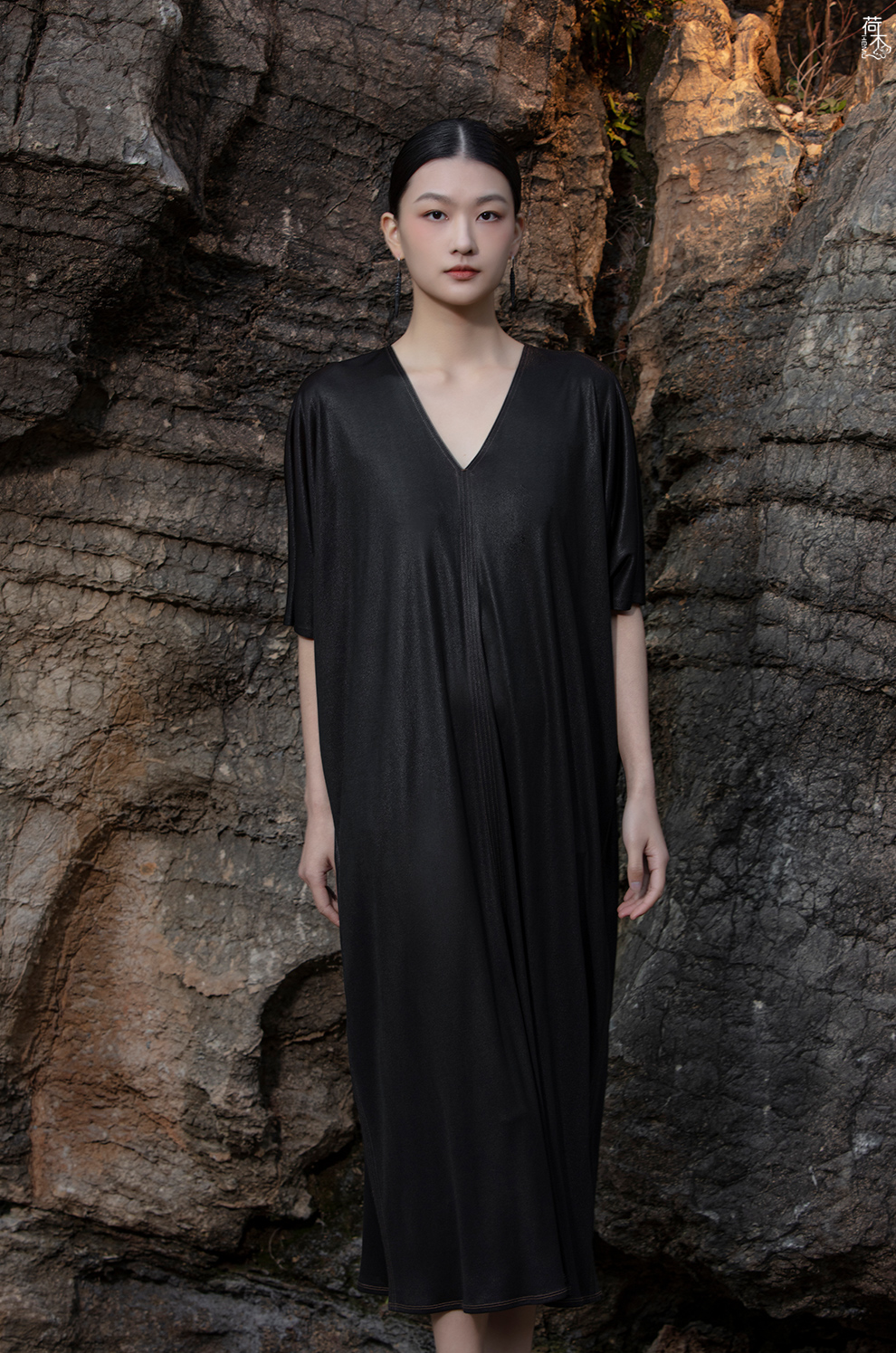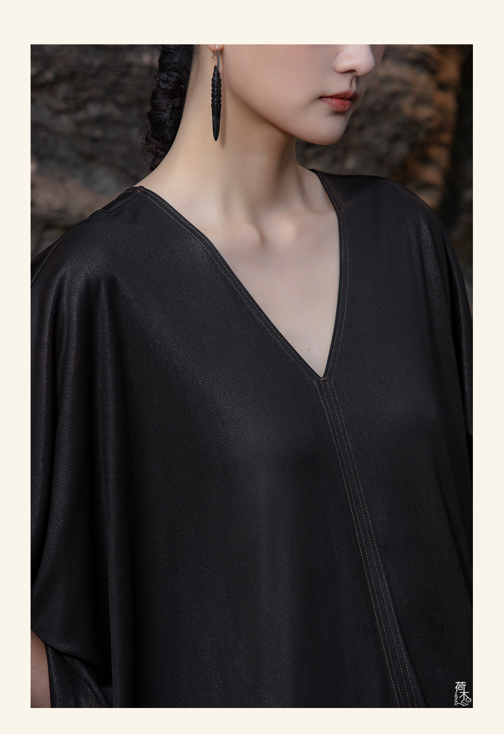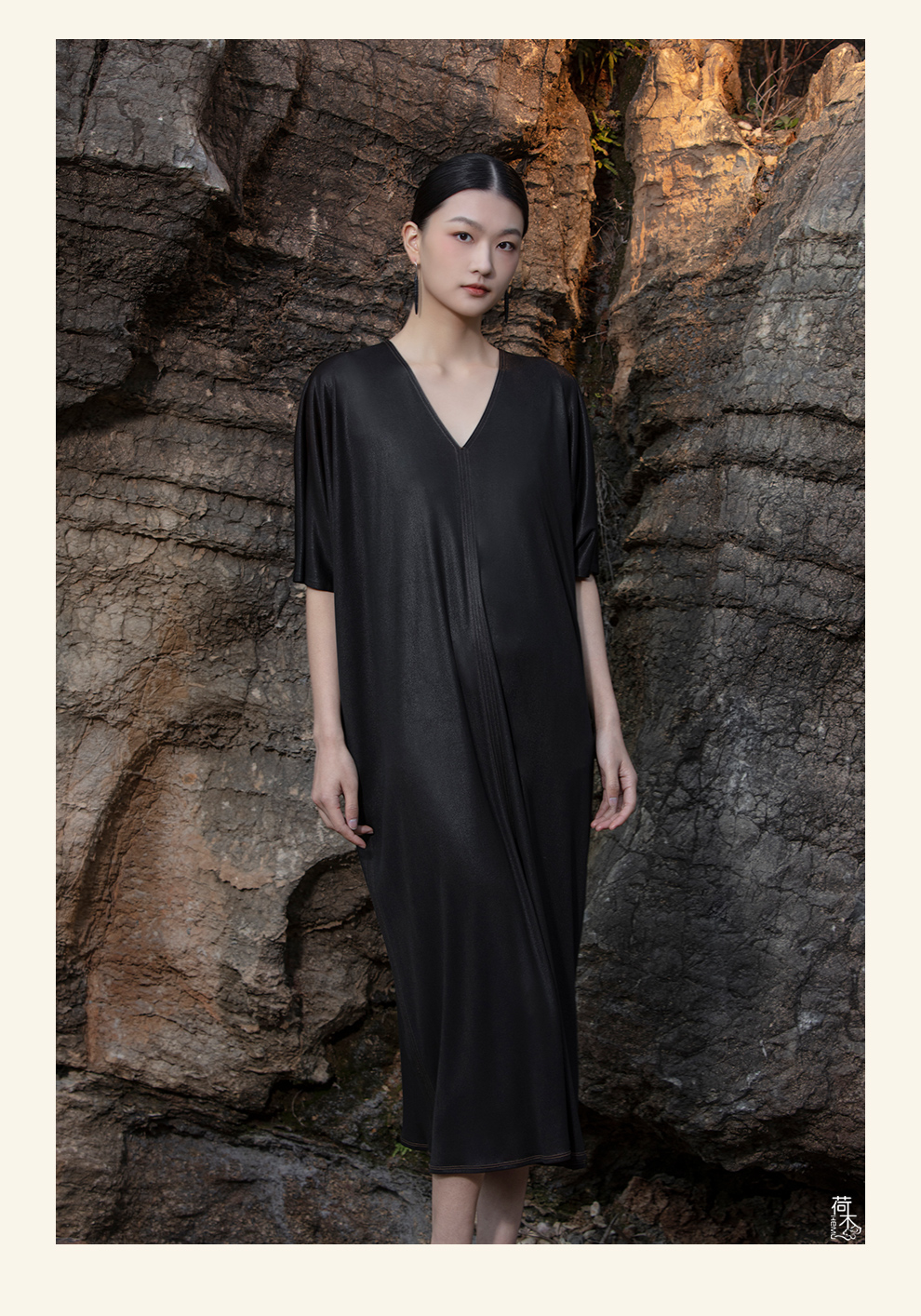 荷木HEMU虚尘·贴袋莨绸连衣裙