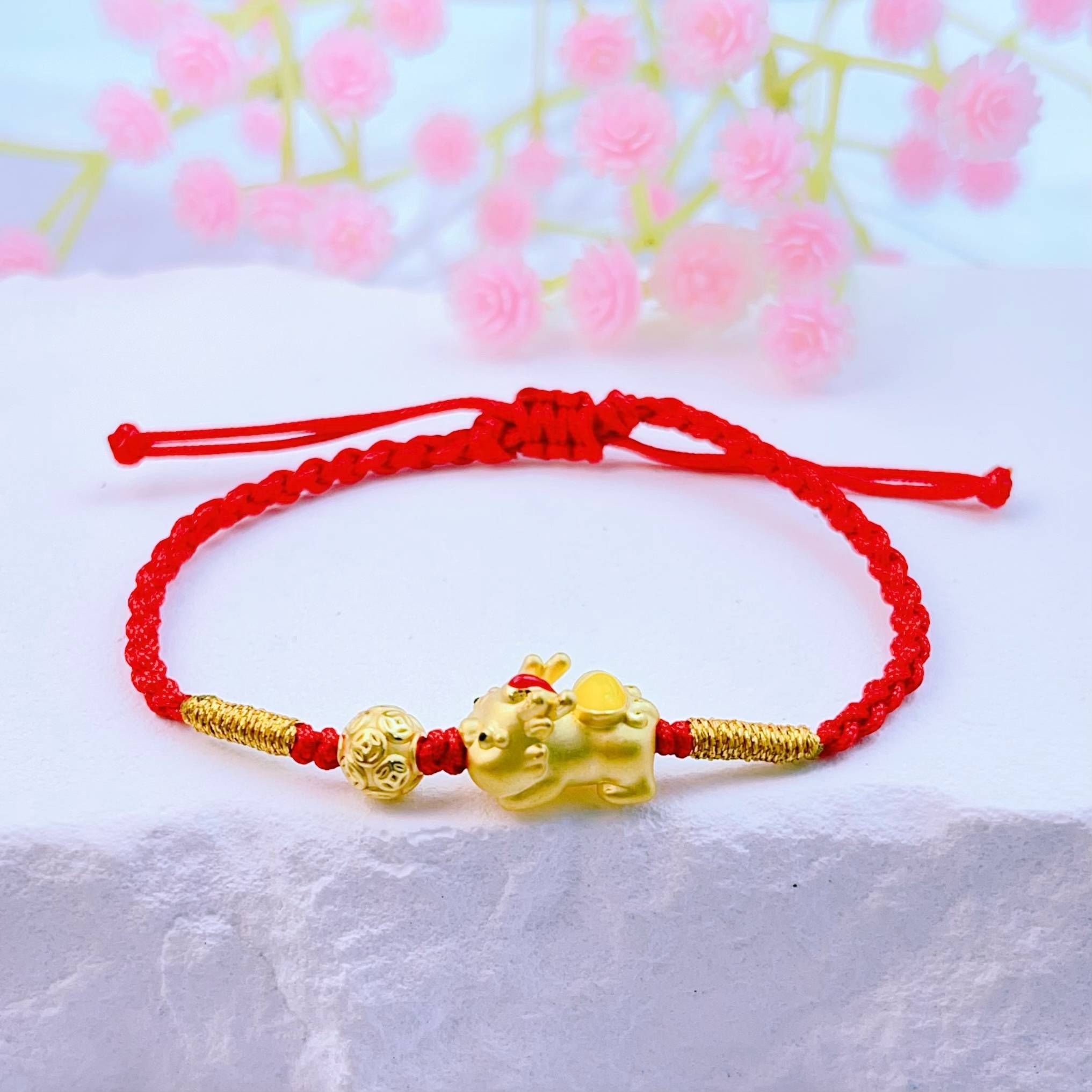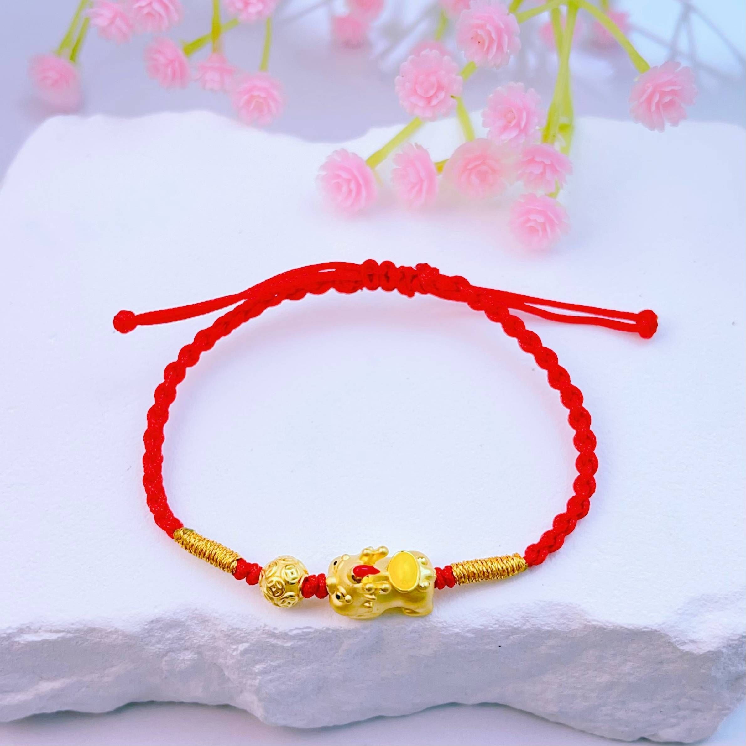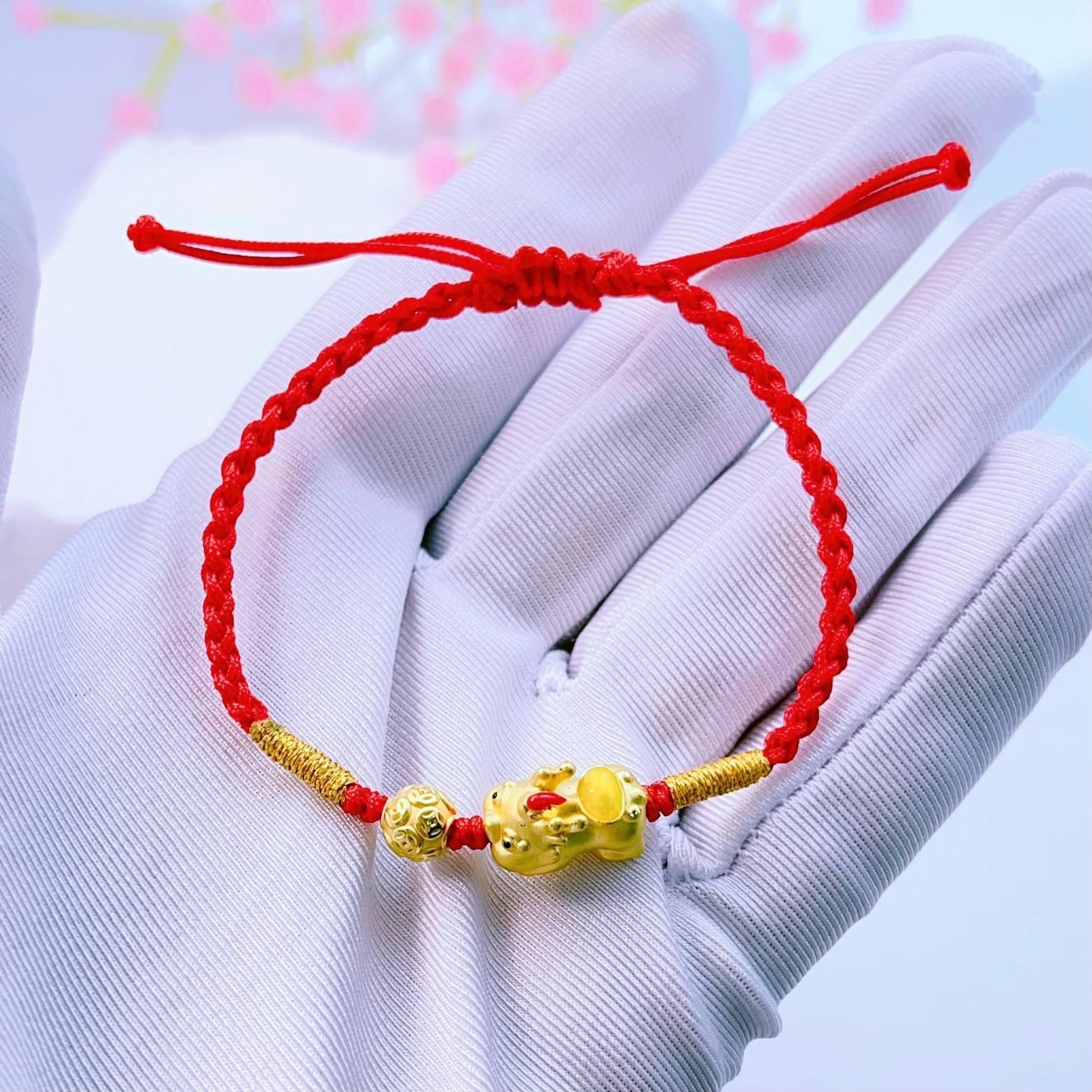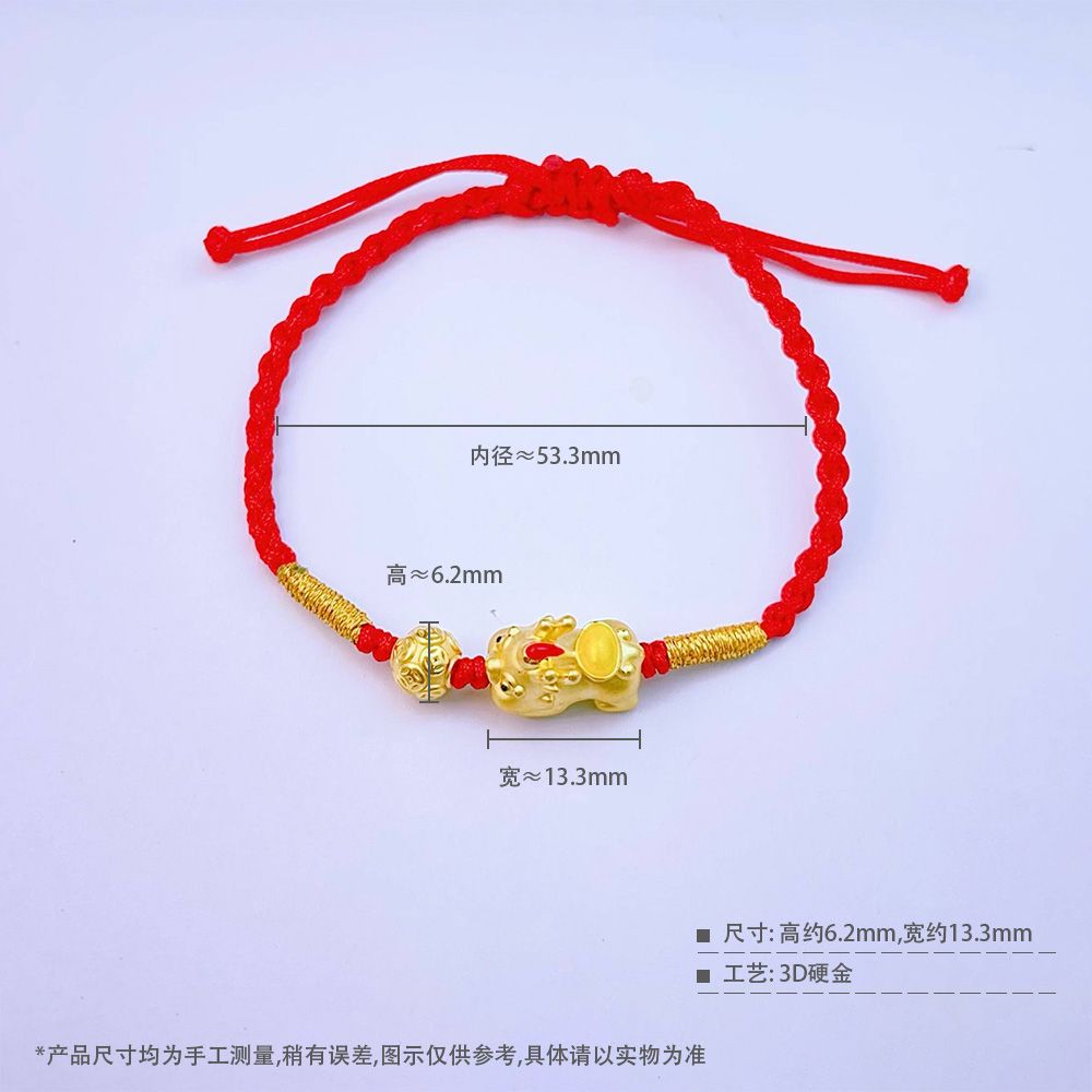 【限时7.5折】【定价黄金】足金 #招财进宝 #儿童/宝宝 3D硬金金币转运珠黄烤漆元宝招财貔貅宝宝红绳调节成品手串(AA3DSC00329)(预售产品下单后不退款不退货不换货不补差价)