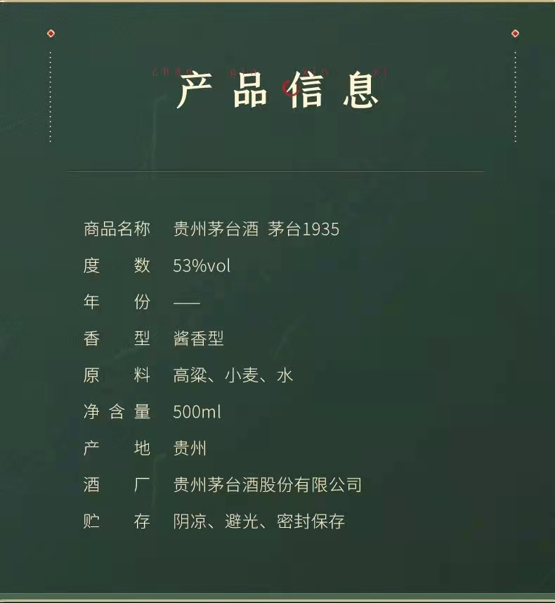 茅台1935酱香型白酒53度500ml*6 原箱发货-jmw