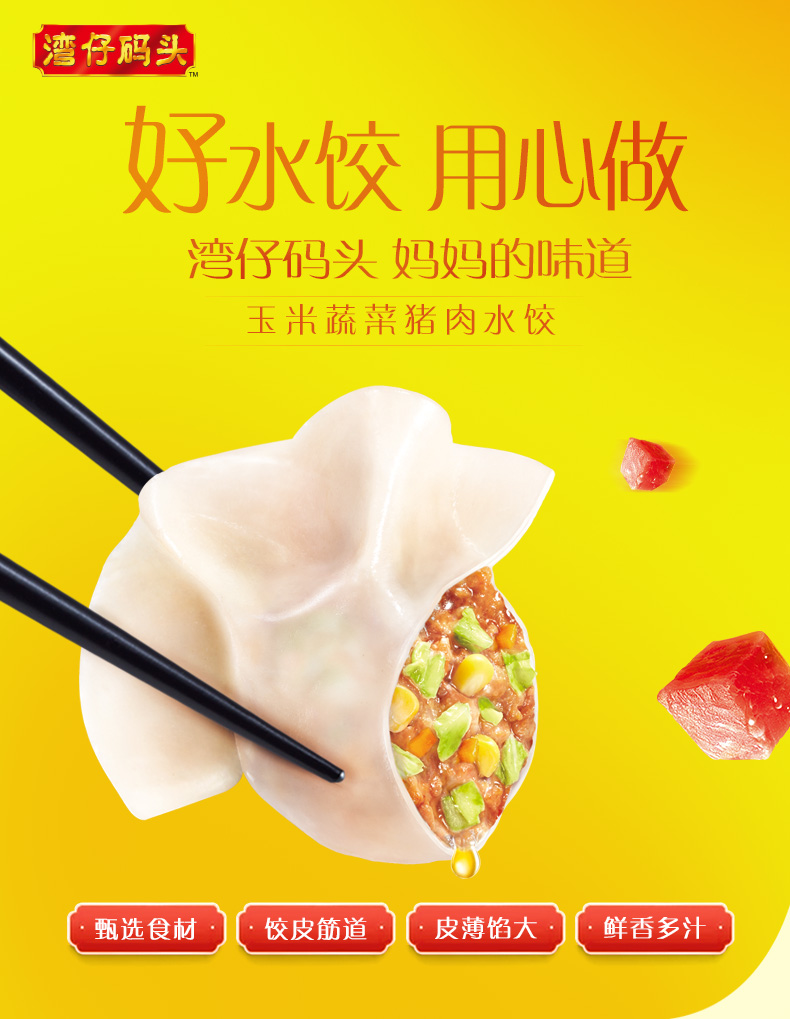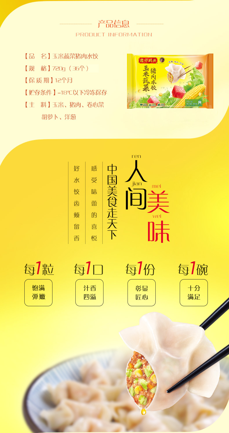 【百】湾仔码头 玉米蔬菜猪肉水饺 720g 36只