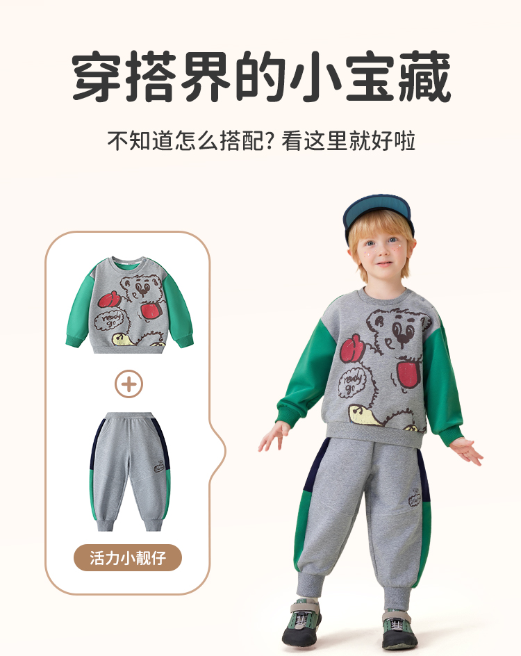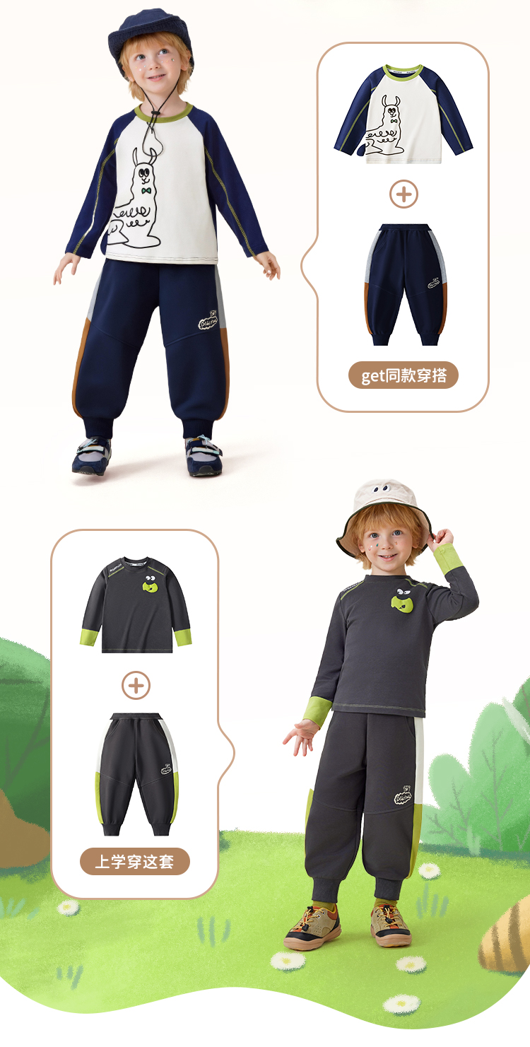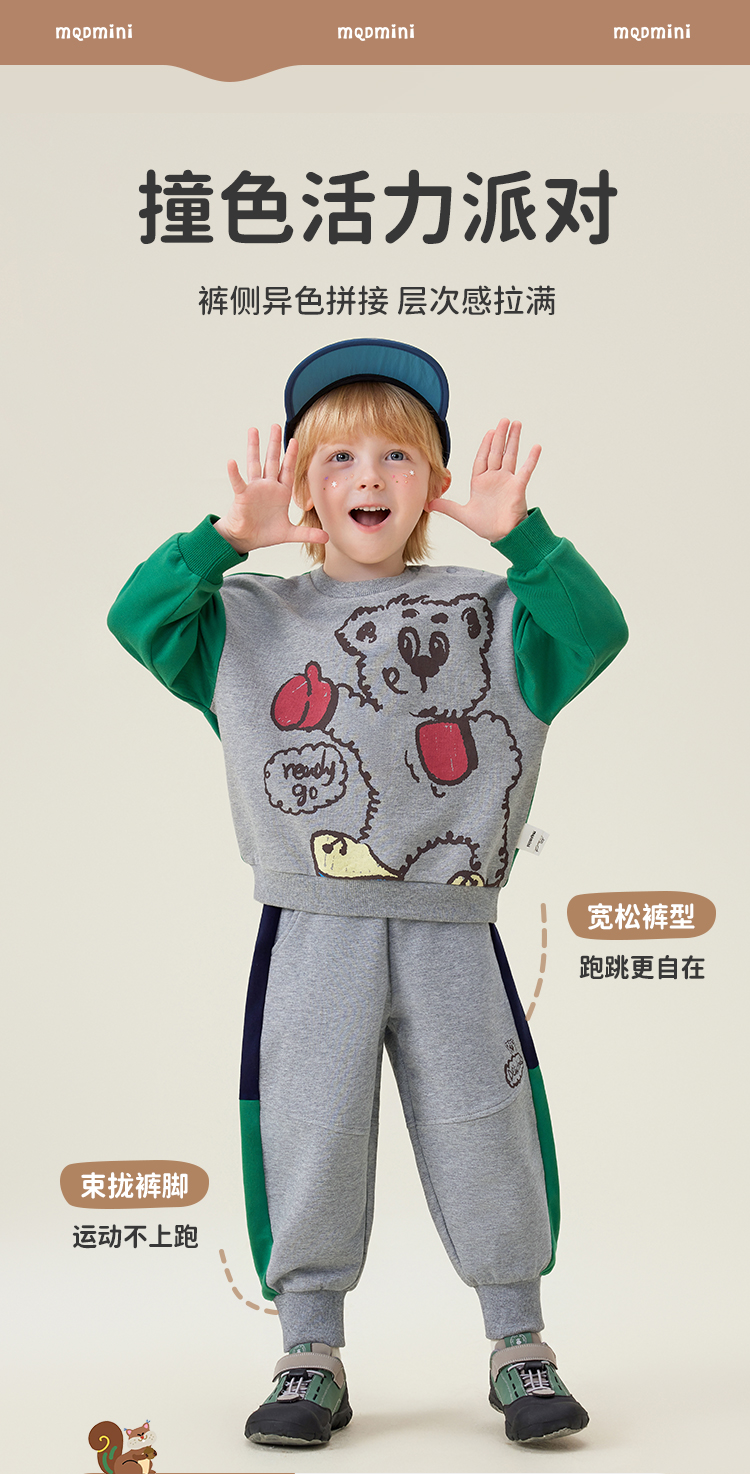 【5A抑菌】【MQDmini】【90-140】男童春秋撞色卫裤