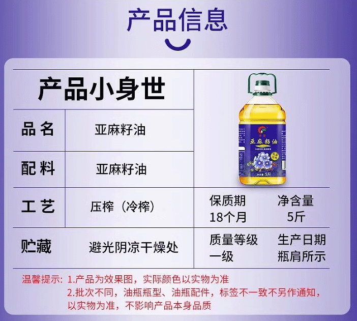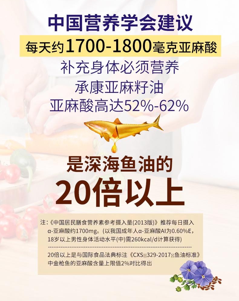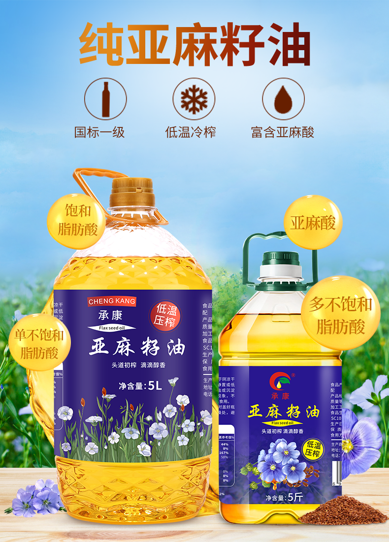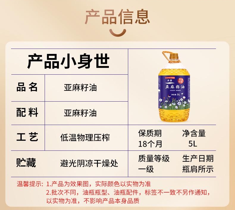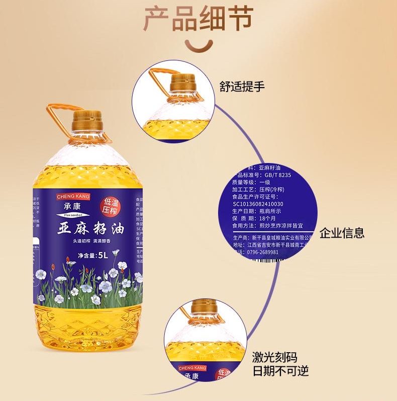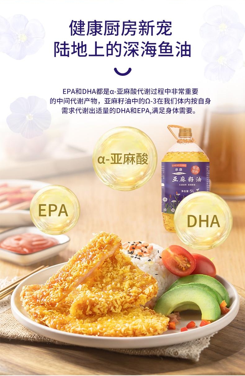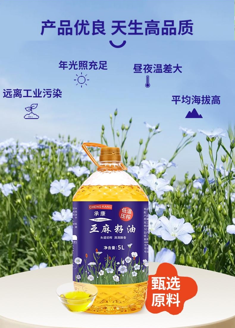 【承康 纯亚麻籽油】营养又健康 进口原料 一级冷榨亚麻籽油5斤/5L 高亚麻酸 浓郁的亚麻籽油 油质清透 饱满口感