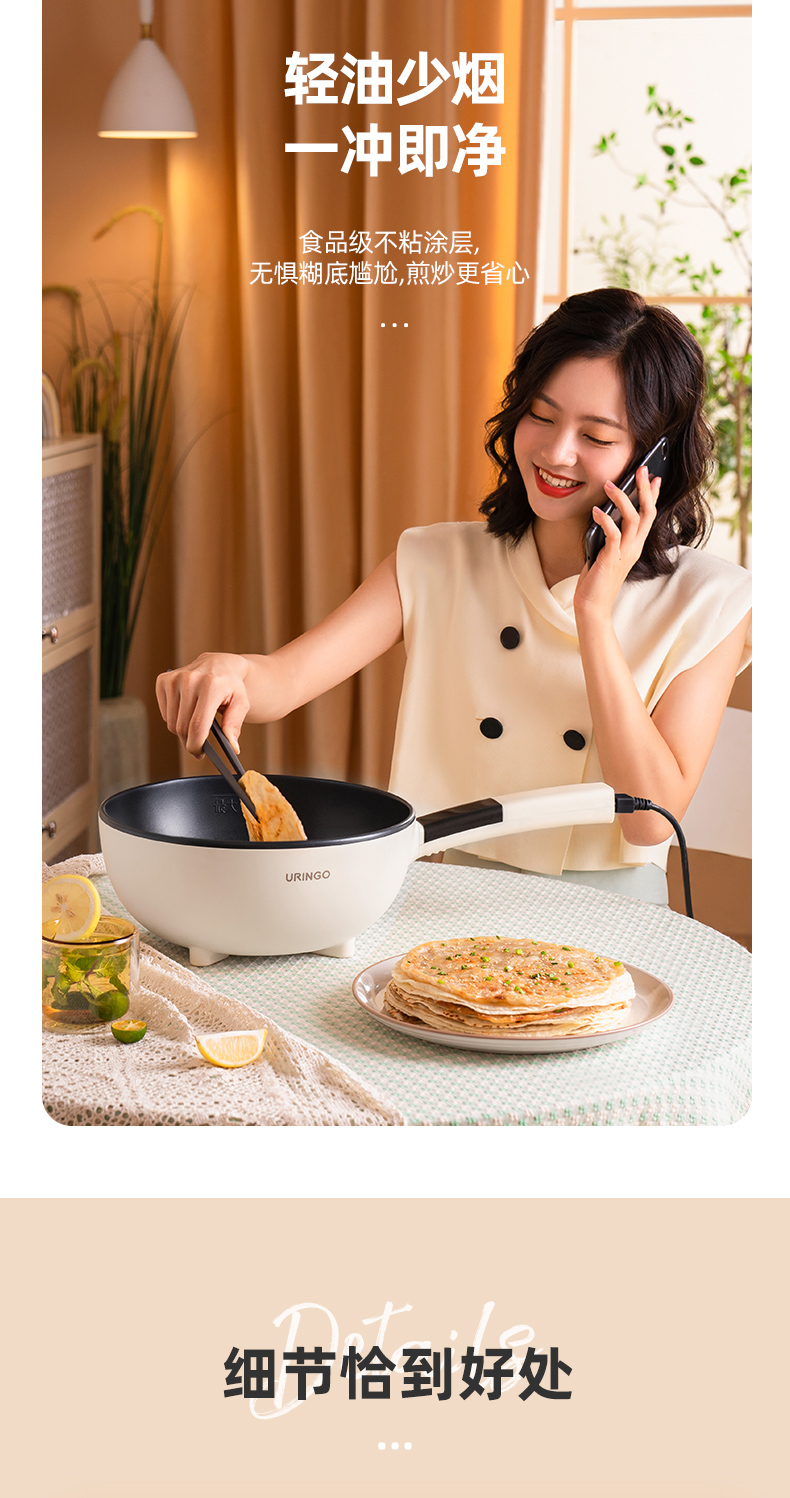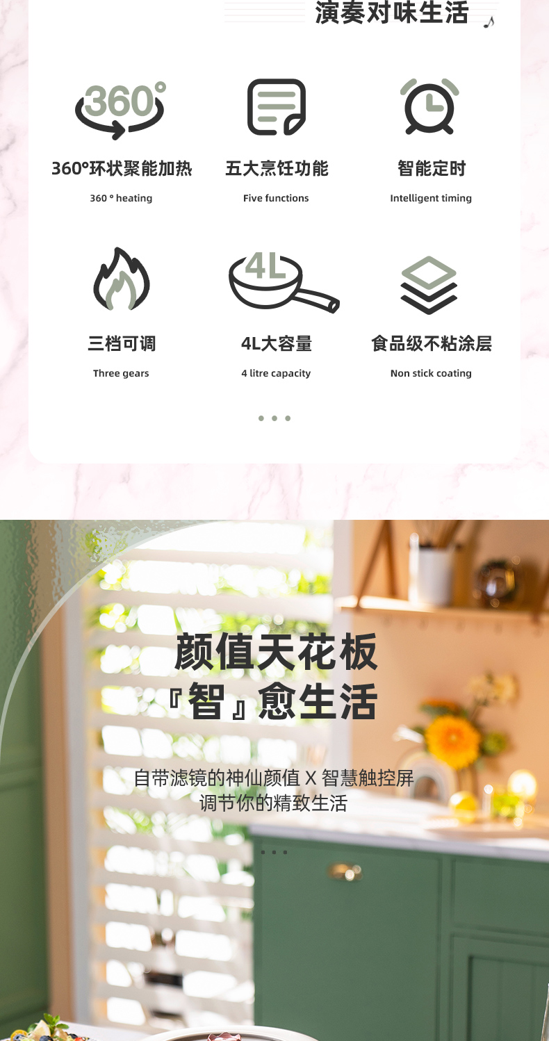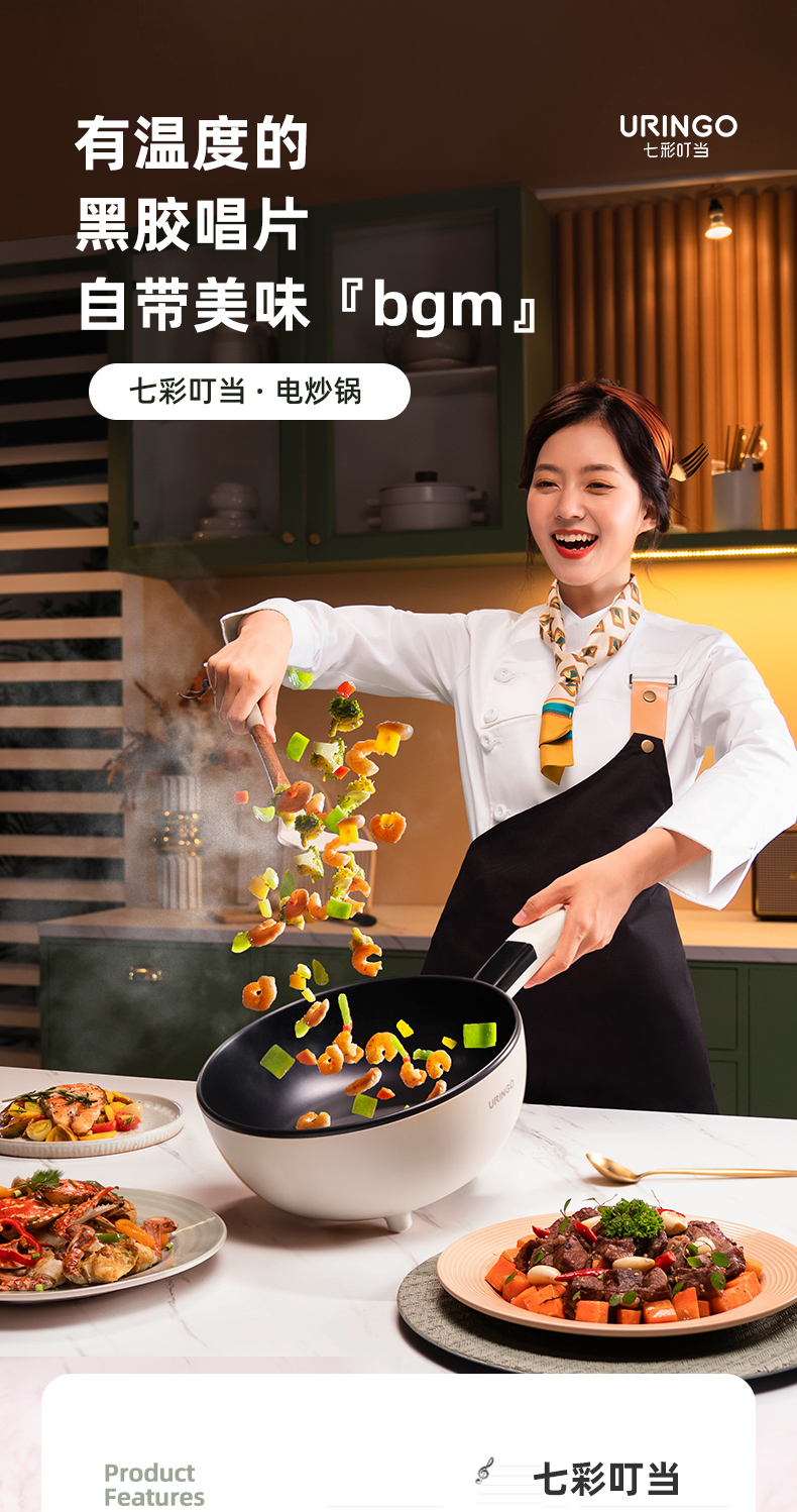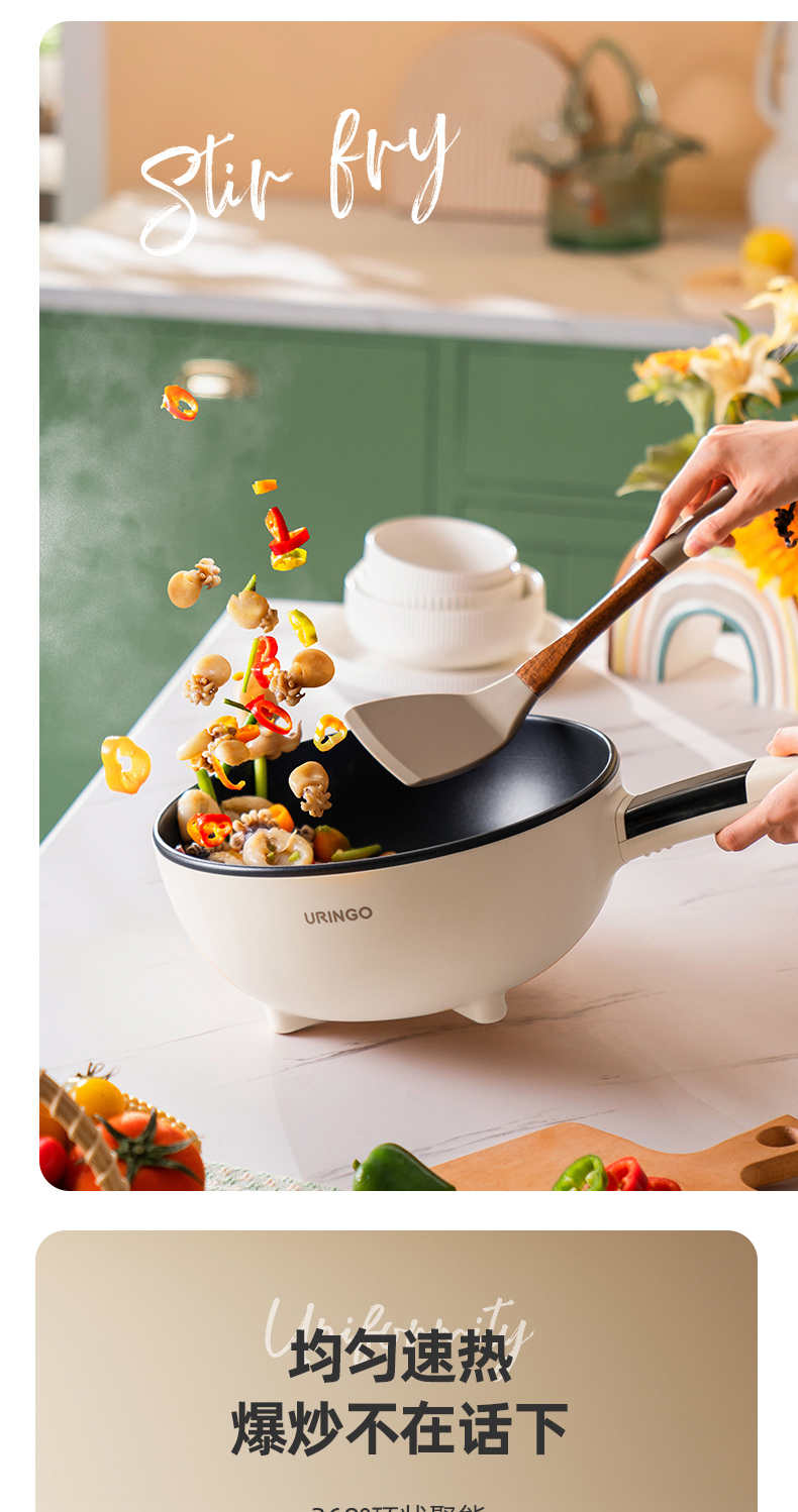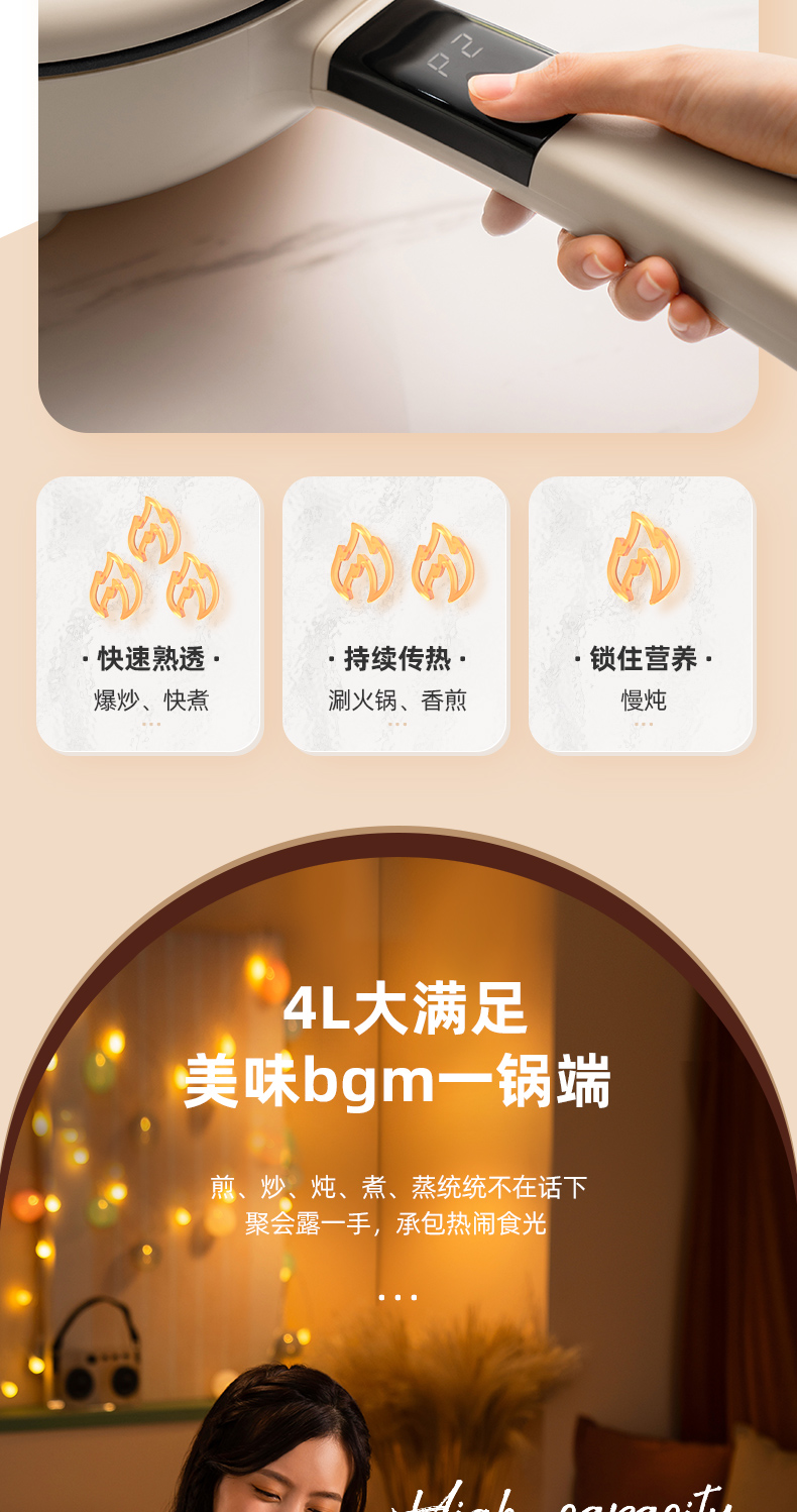 【五大烹饪功能】七彩叮当电炒锅1锅=电火锅/电磁炉/电煮锅/炒锅/平底锅环状聚能加热防干烧设计4L大容量(送木铲)