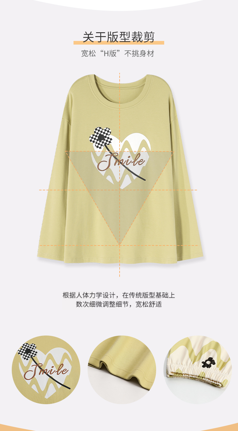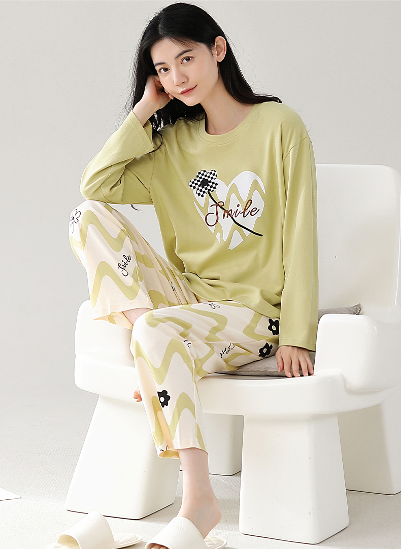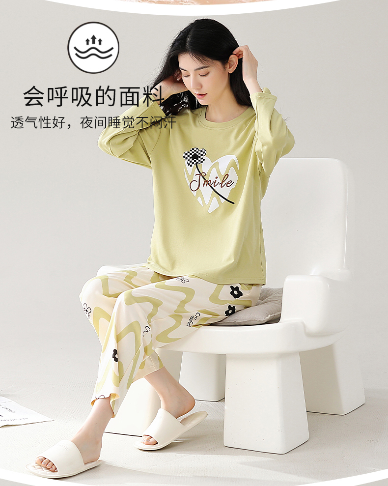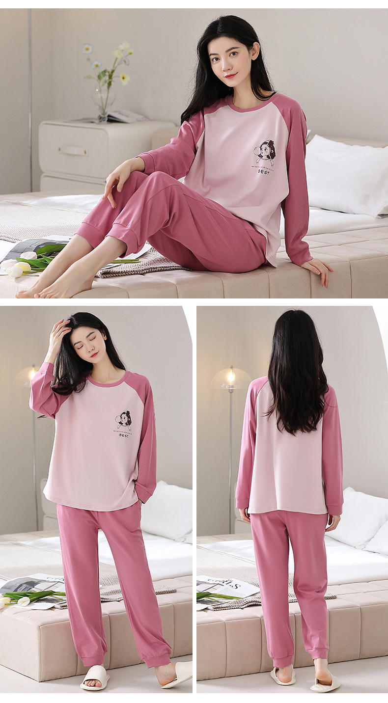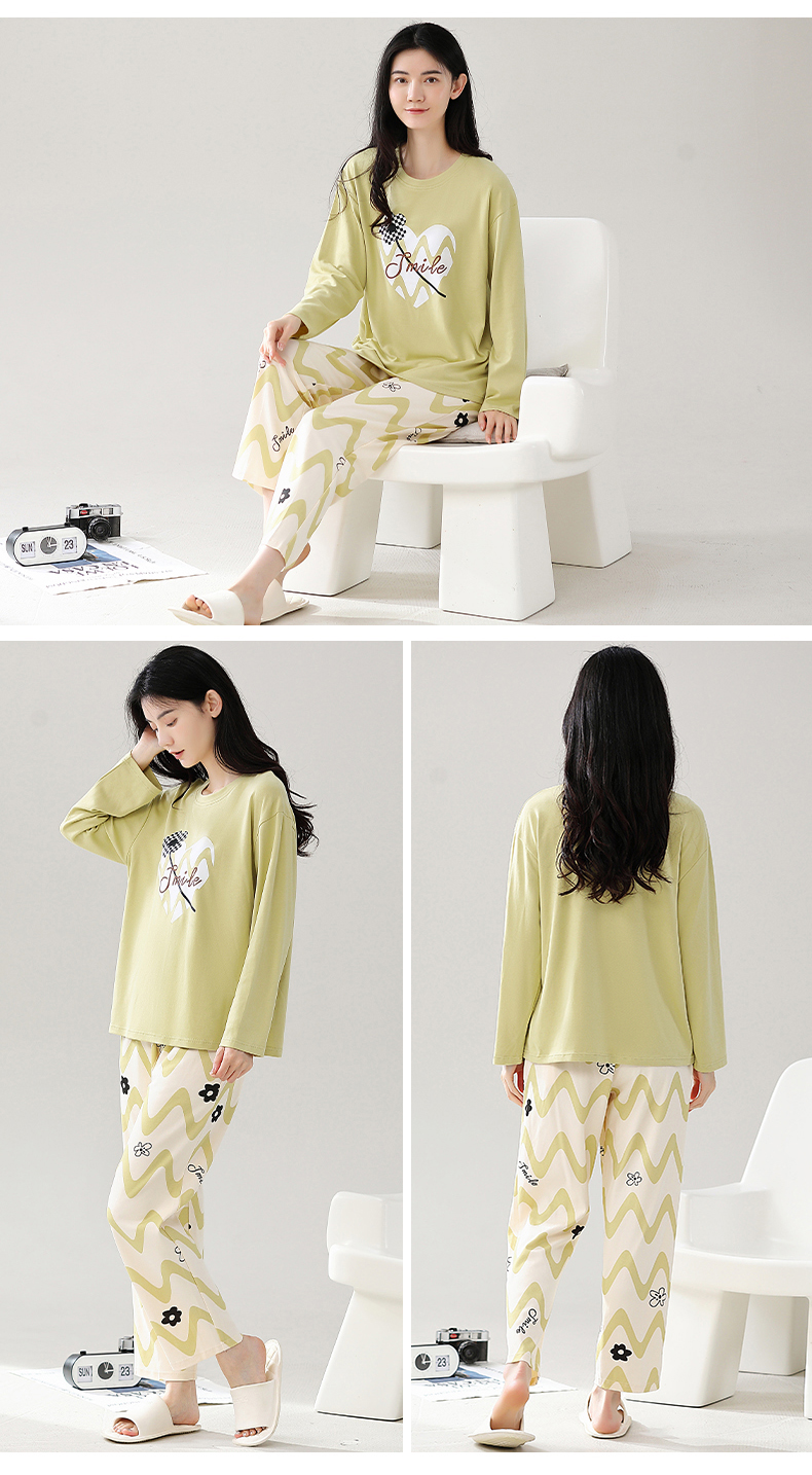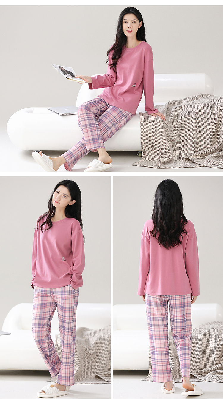秋冬季纯棉长袖休闲简约圆领家居服女士套装