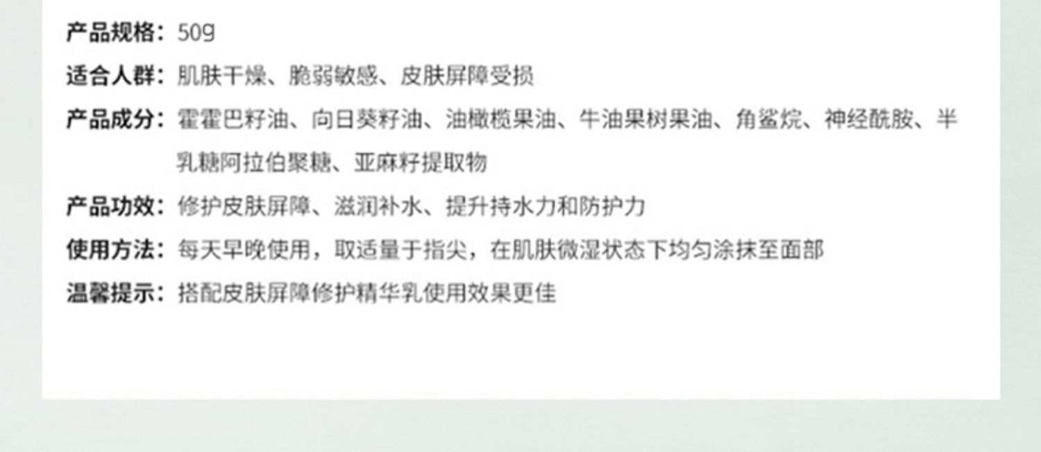 玉泽皮肤屏障修护保湿霜 干敏肌保湿改善泛红补水缓解干燥舒缓面霜