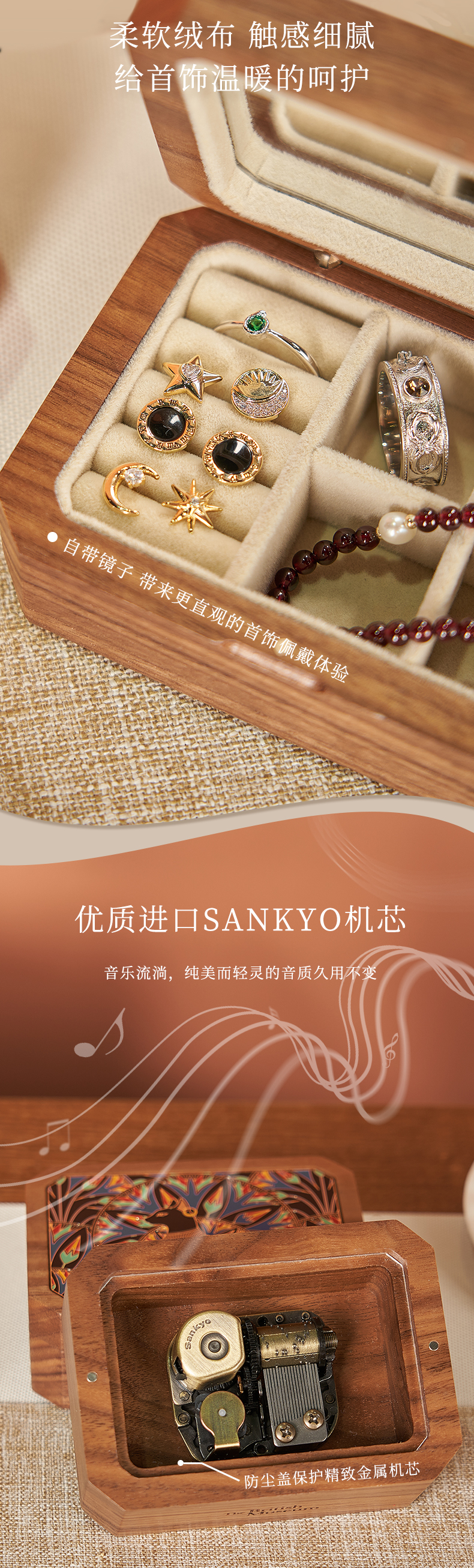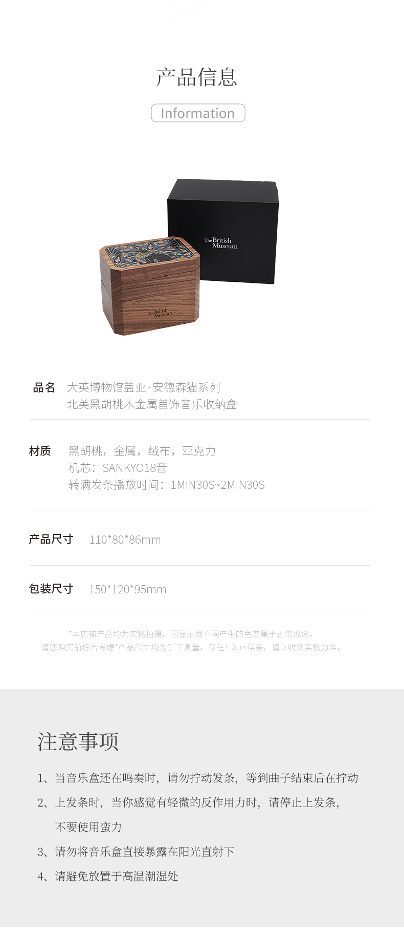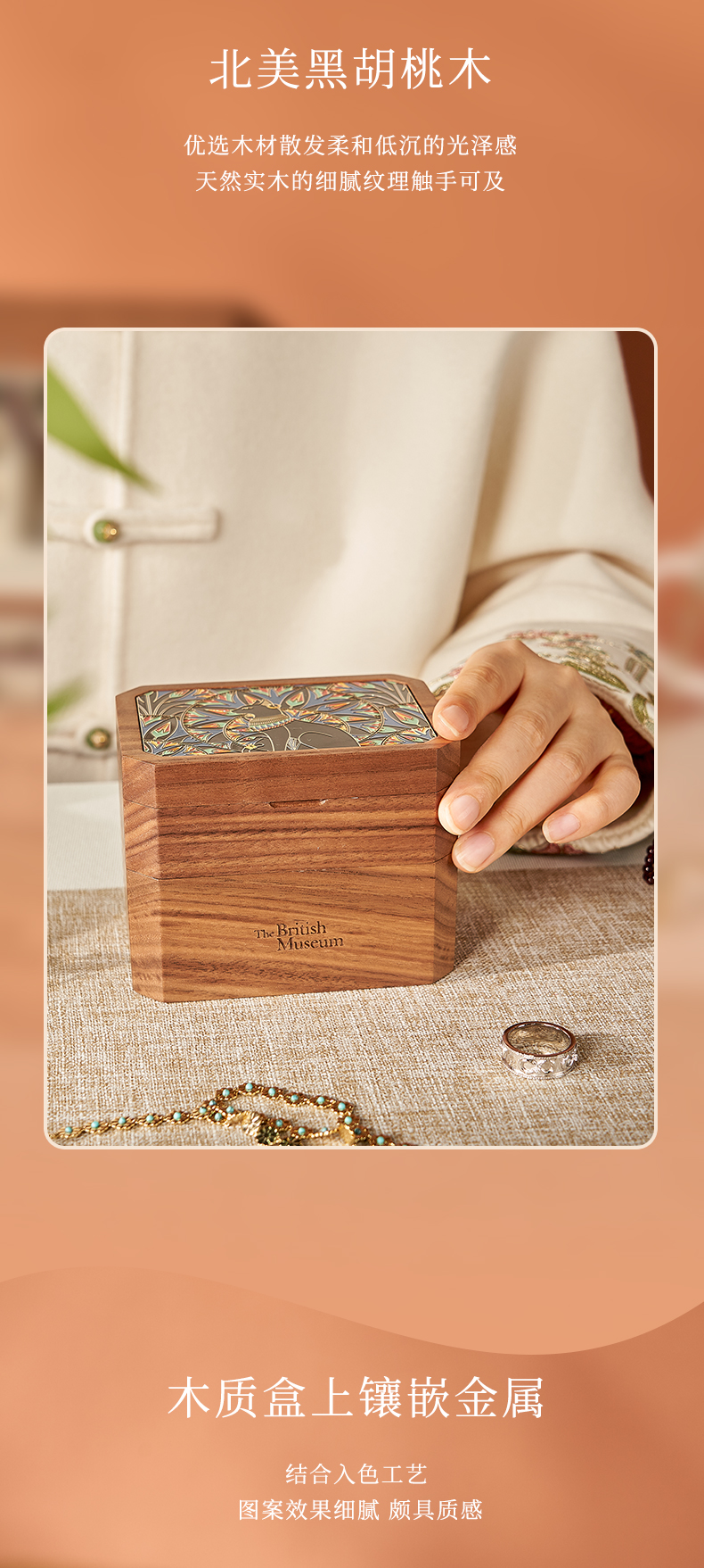 大英博物馆 盖亚·安德森猫系列 北美黑胡桃木金属首饰音乐收纳盒