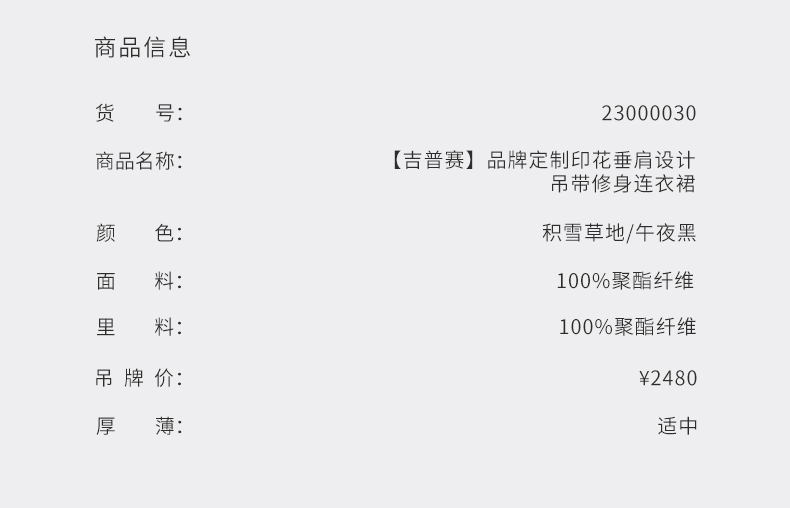【吉普赛】品牌定制印花垂肩设计吊带修身连衣裙/23000030