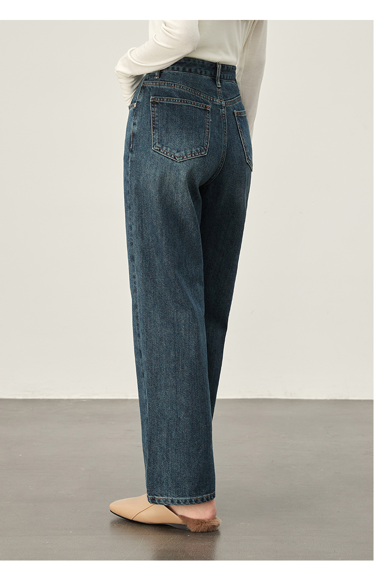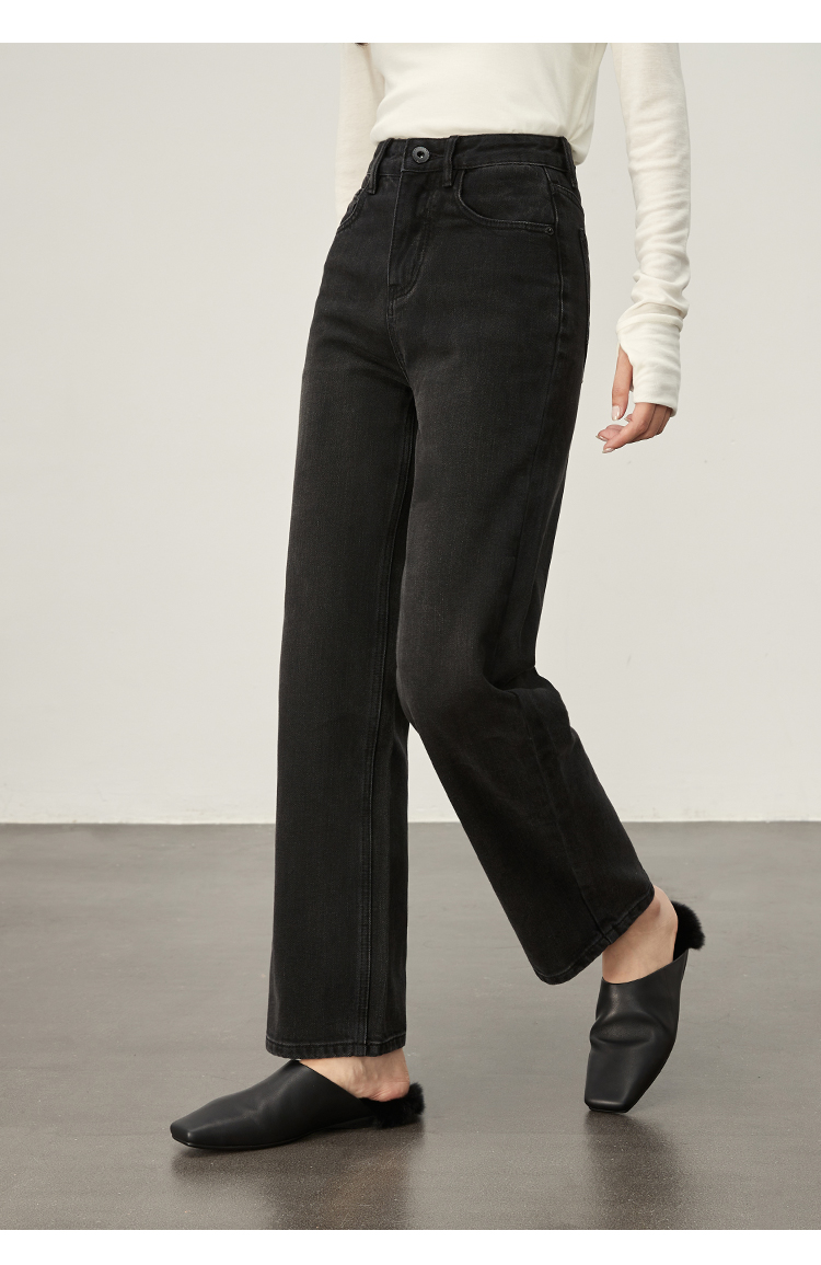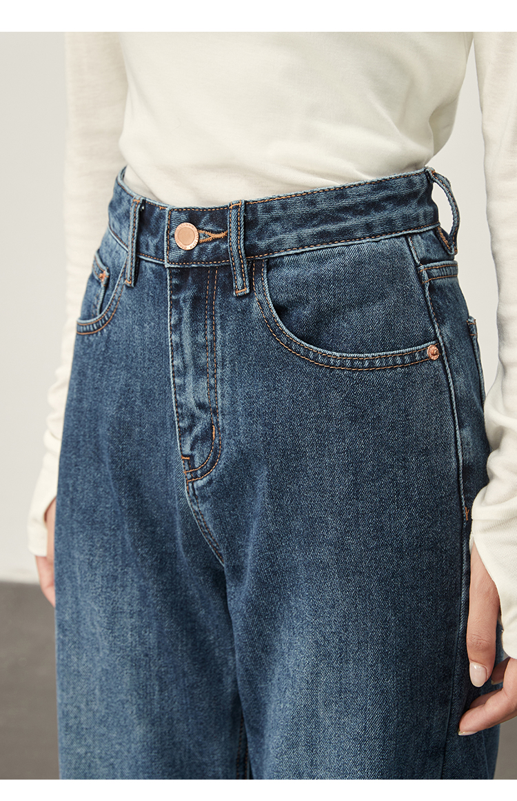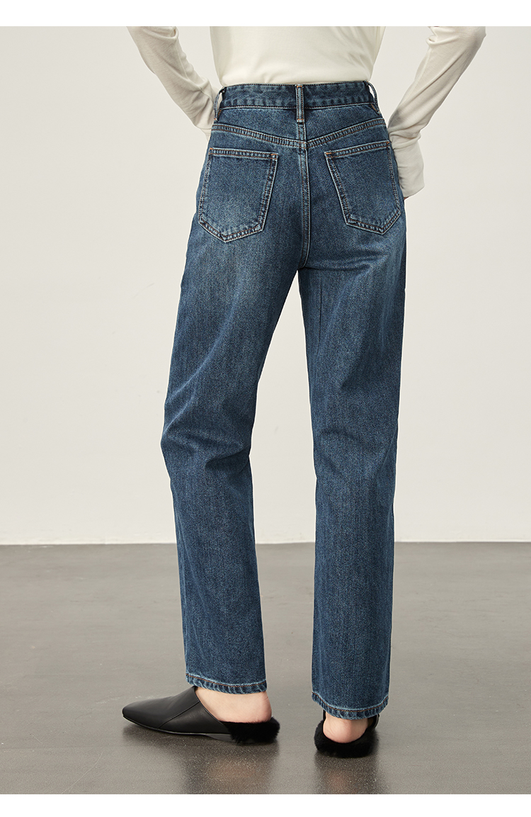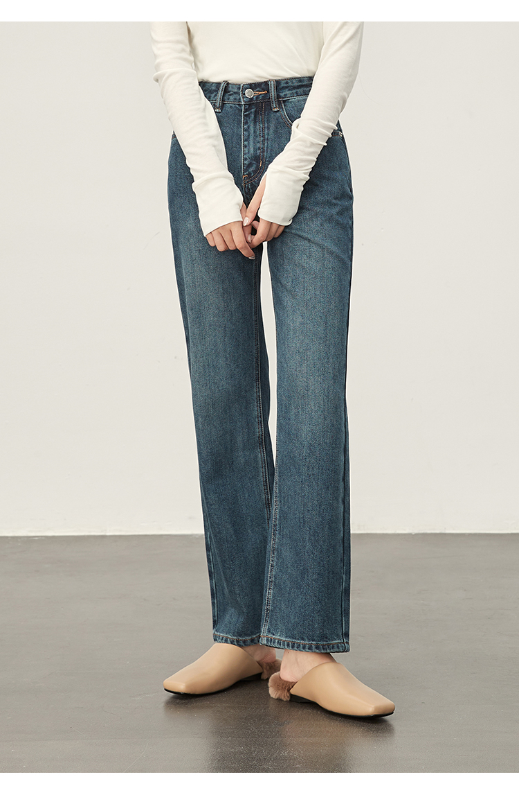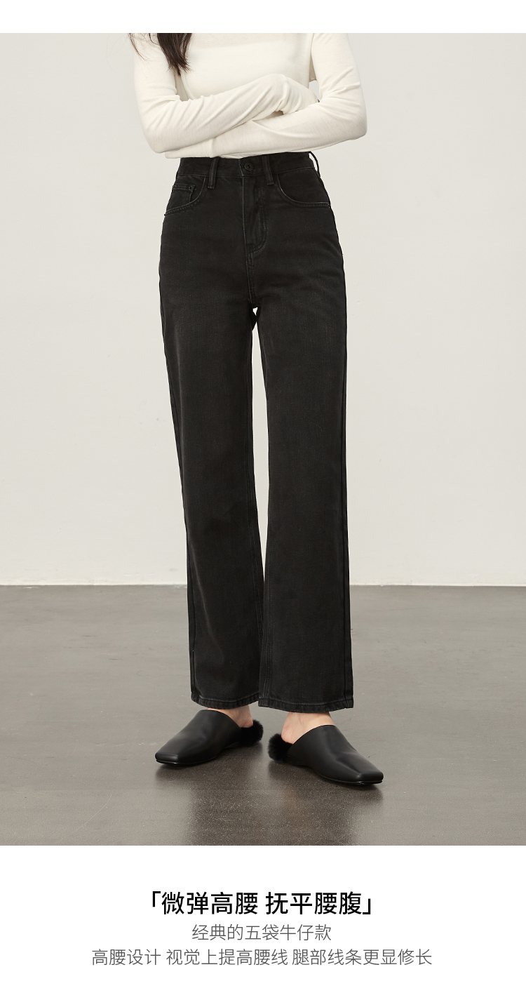 DENYBULES暖姜高腰直筒牛仔裤