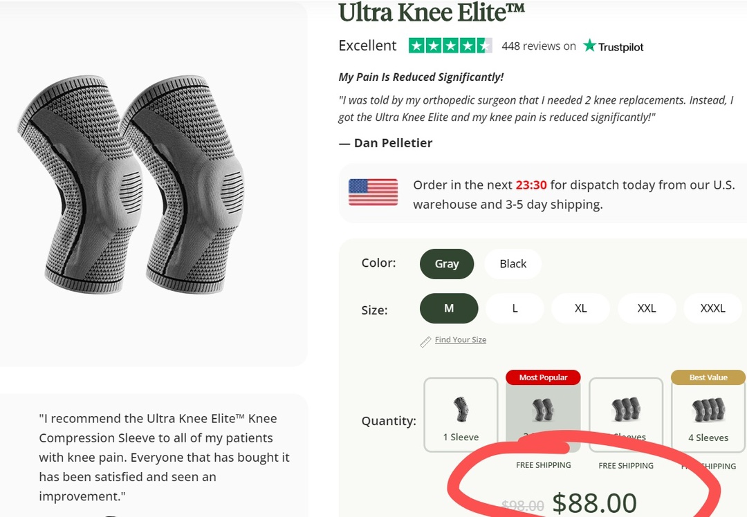 Amrelieve运动多功能护膝亚马逊订单88美刀一对