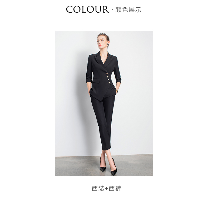IWY/黑色气质西装套装女修身显瘦通勤商务高端职业装女神范时尚工作服 C10408+P10408B