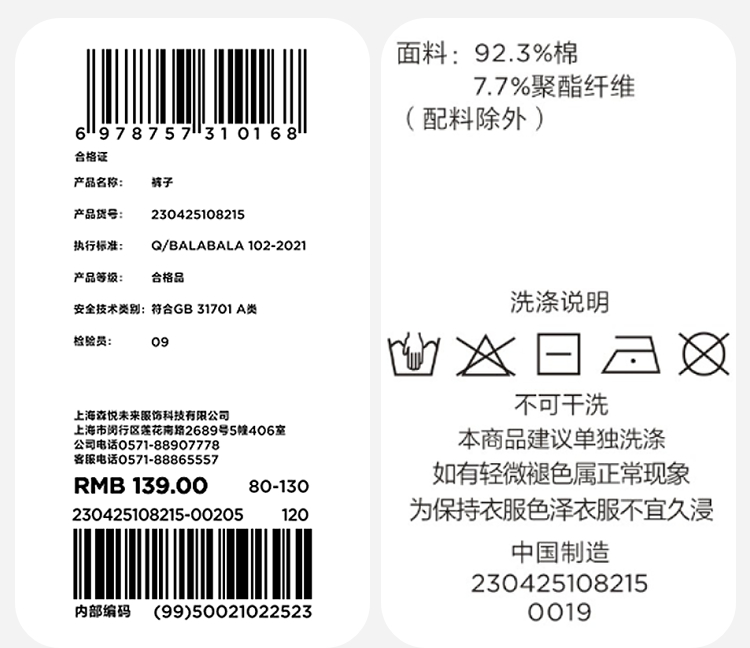 迷你巴拉男女童裤子2025冬新品宽松宝宝婴儿长裤