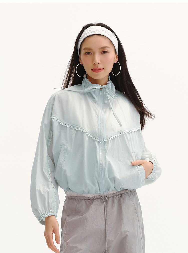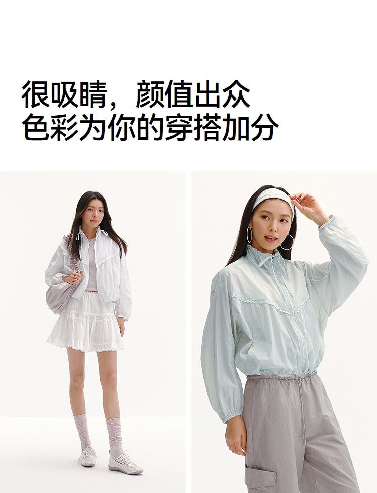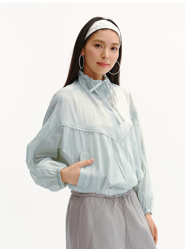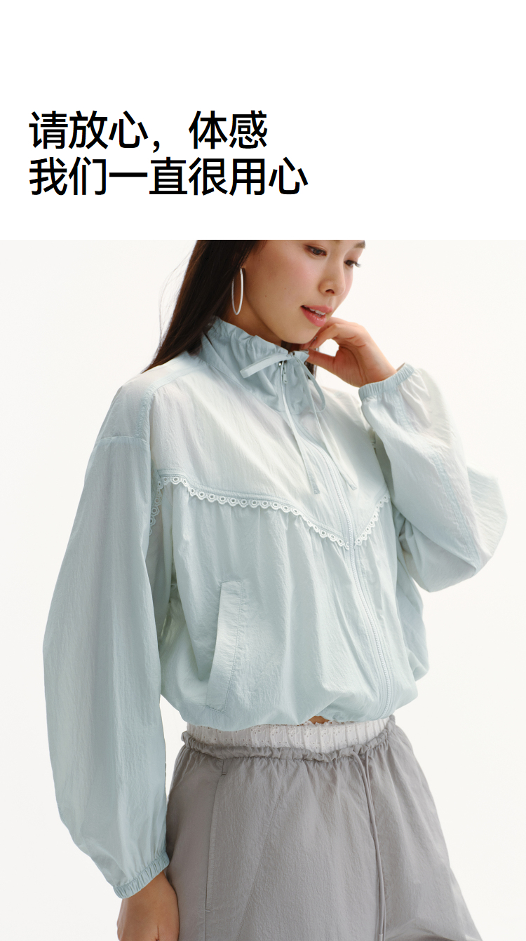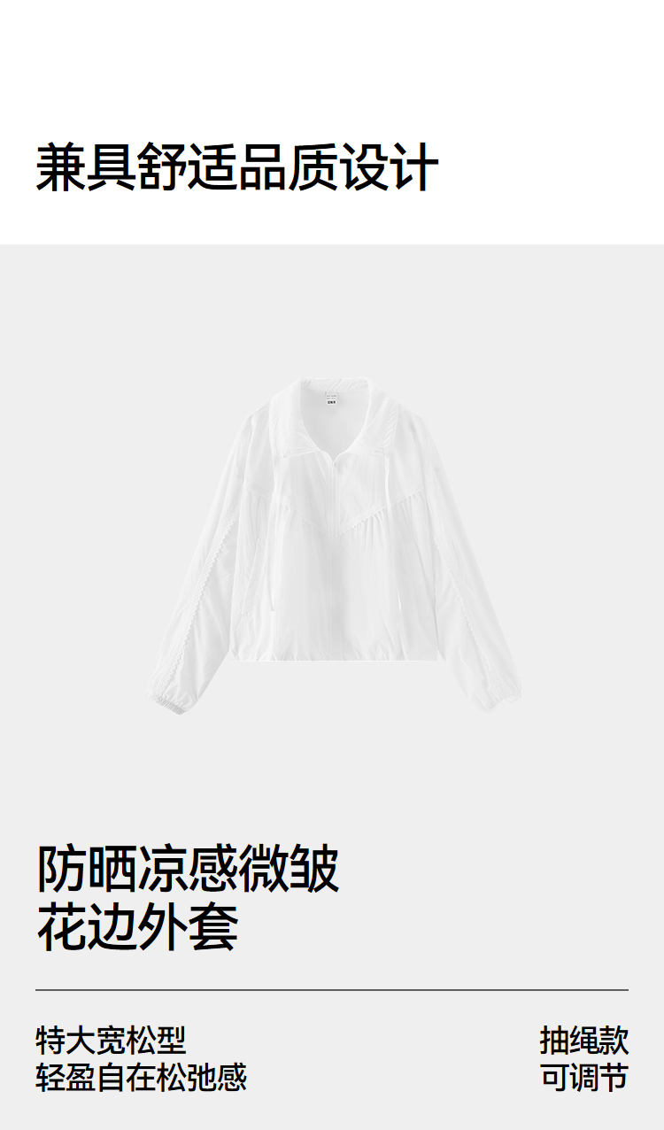 商场同款|森马外套女夏季防晒凉感oversize花边2026新款慵懒夹克