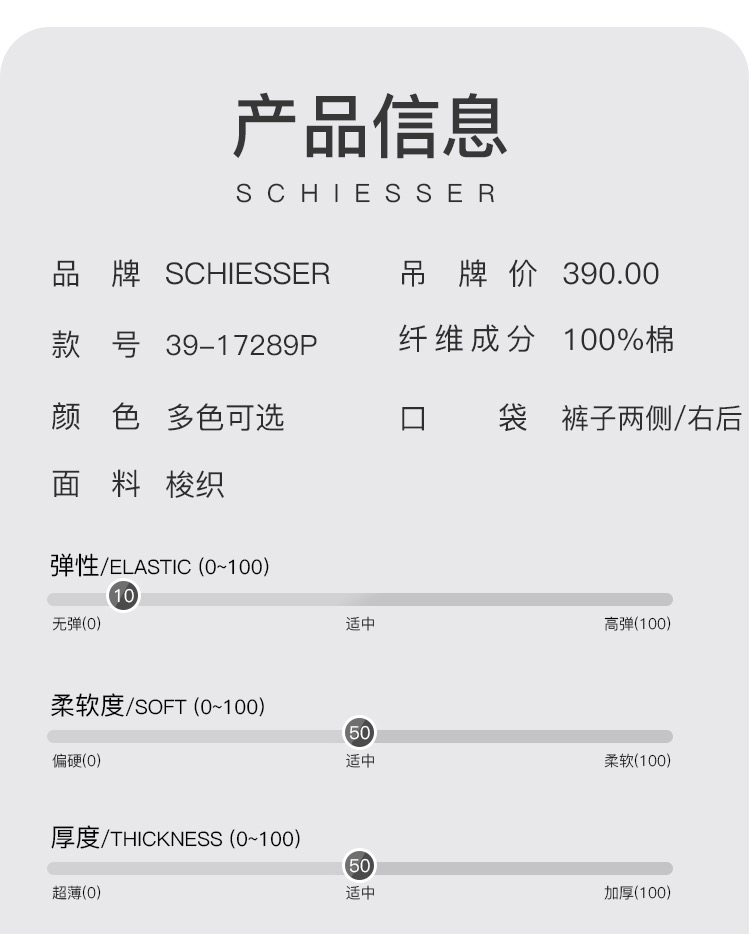 - 来自德国的SCHIESSER舒雅,专注做内衣一百四十余年,不遗余力的材料创新,因材而异的专业剪裁,健康环保的加工技术以及充满文化关注的时尚主题,做你认识之外的舒适内衣。