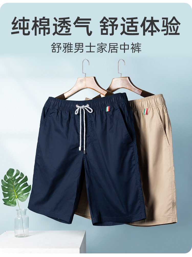 【全棉五分】SCHIESSER 德国舒雅男士纯棉春夏新款梭织全棉家居中裤宽松五分裤39/17289P