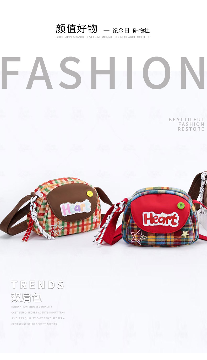 复古撞色字母heart彩色格纹斜挎包纪念日百货门店同款167046262