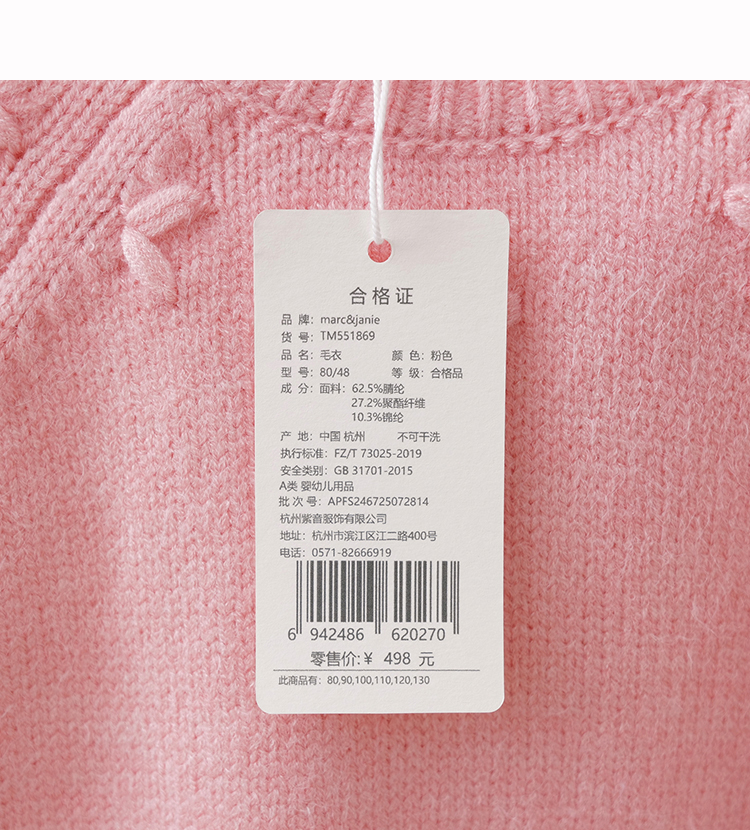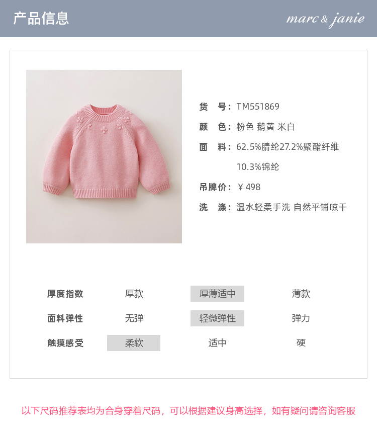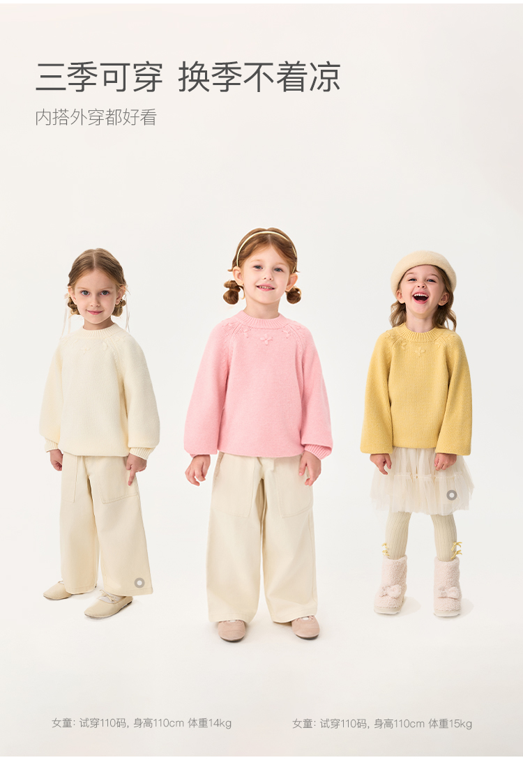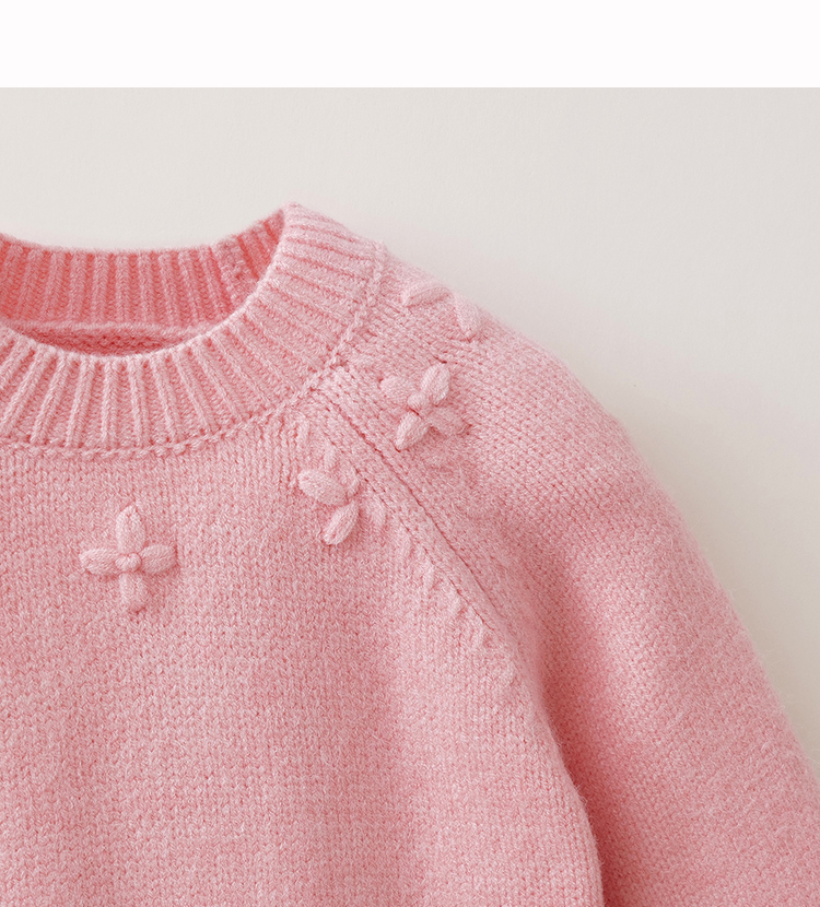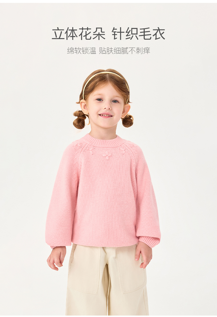 马克珍妮女童立体花朵温暖针织毛衣2025年秋冬新款551869