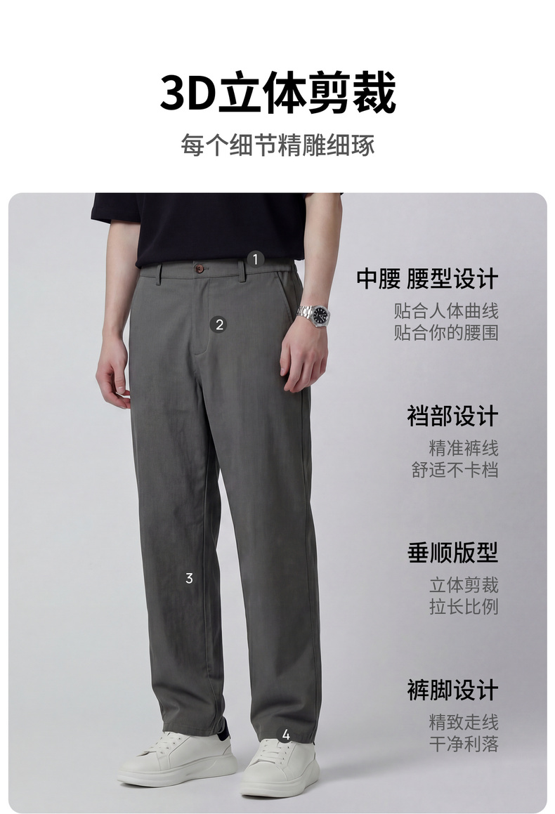 【瞬间凉感&抗起球】圣得西2026年春季新款宽松轻商务弯刀休闲裤