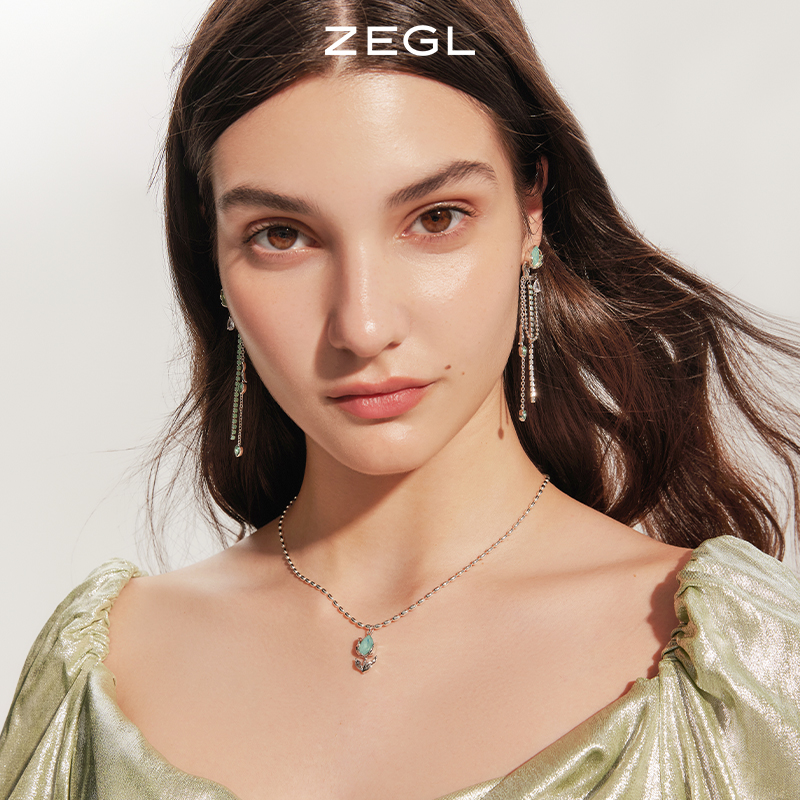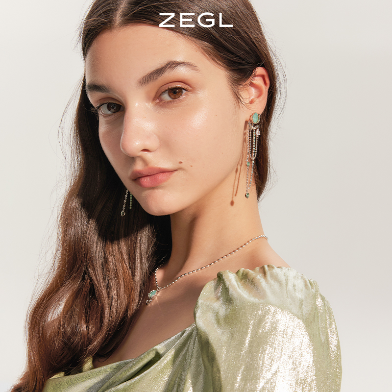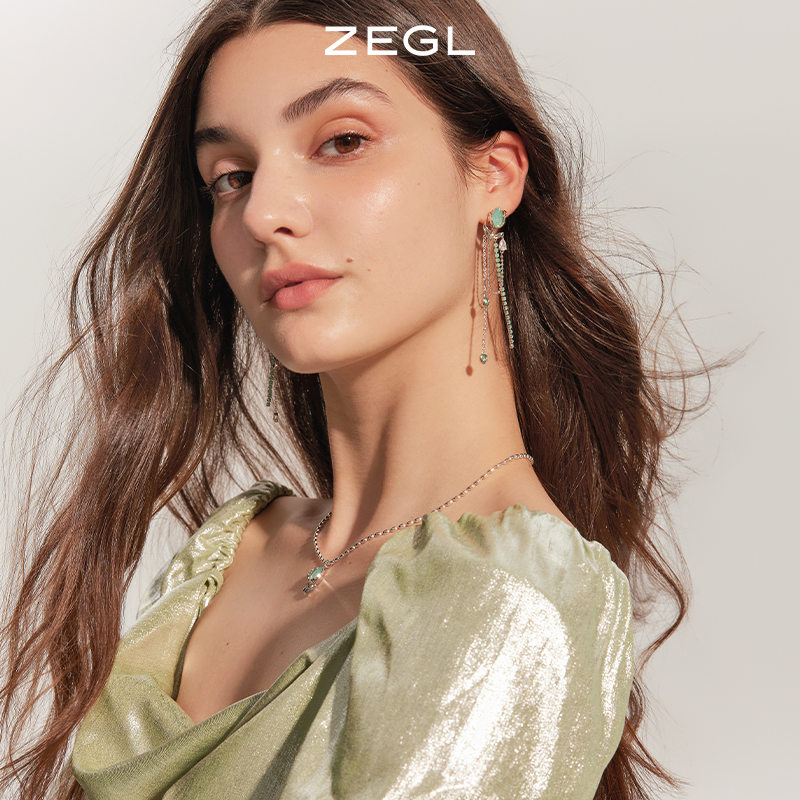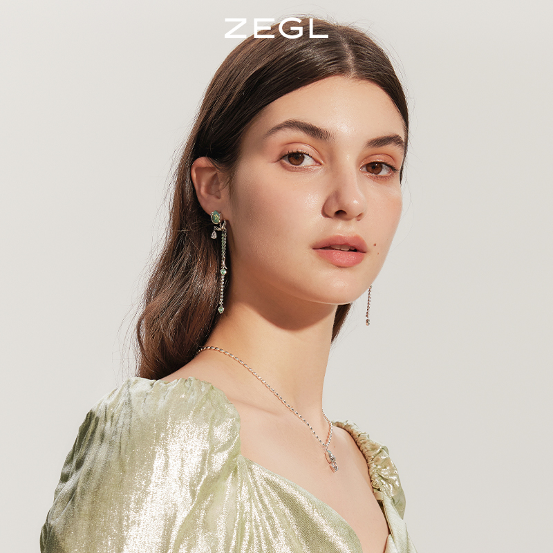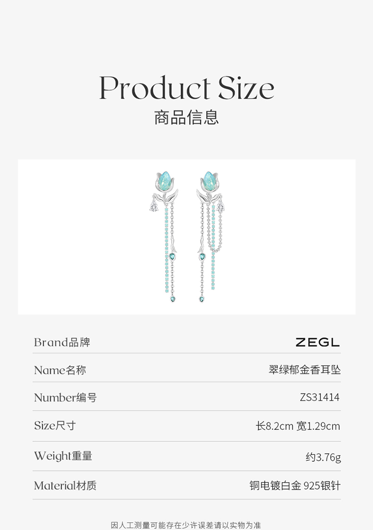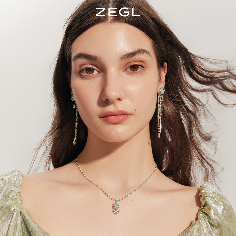 ZEGL设计师郁郁青葱系列郁金香流苏耳环女长款新中式耳钉银针耳饰