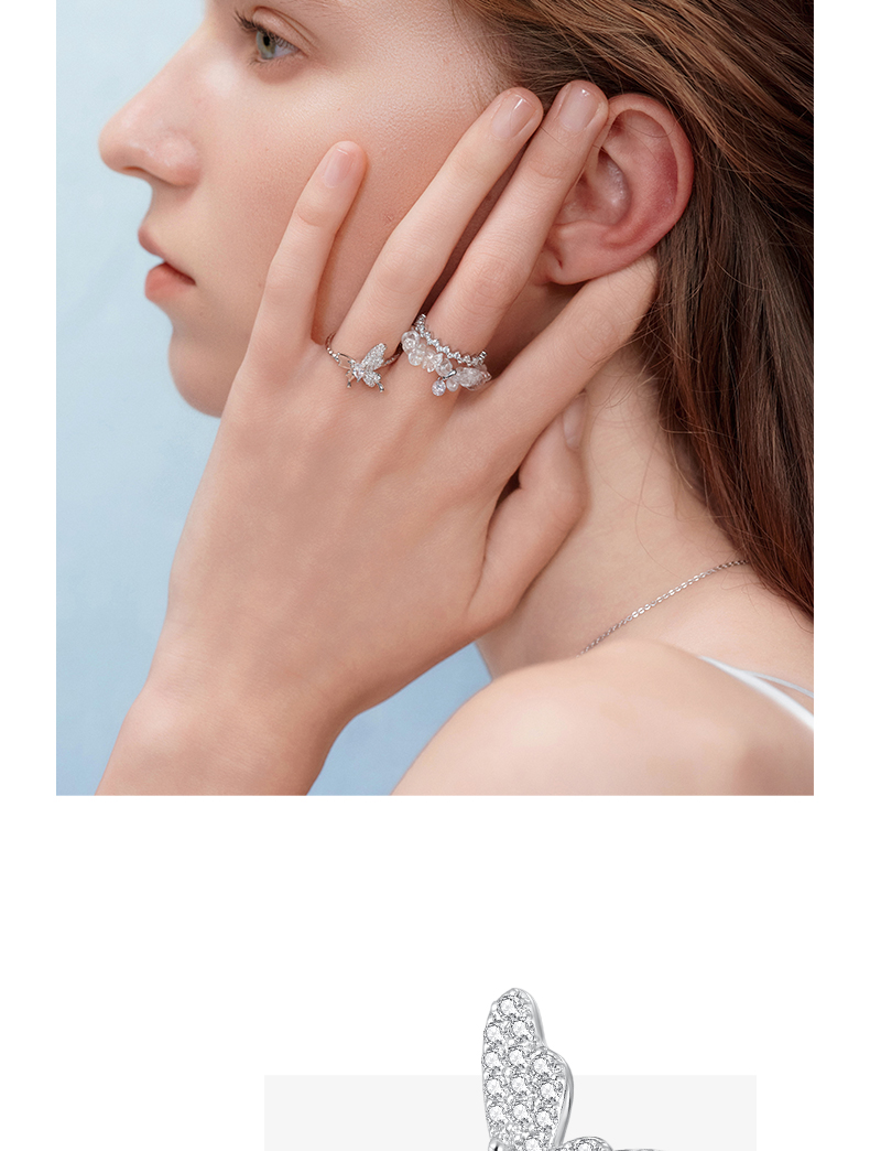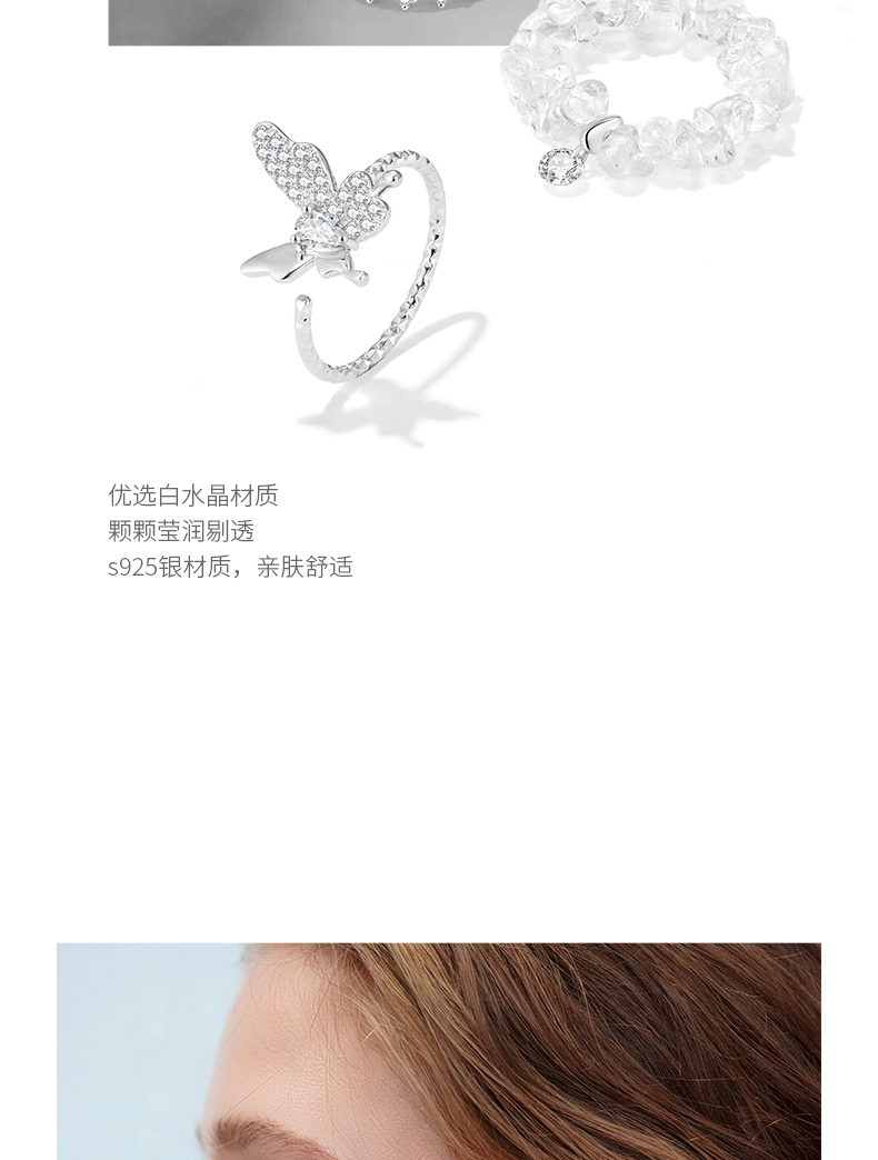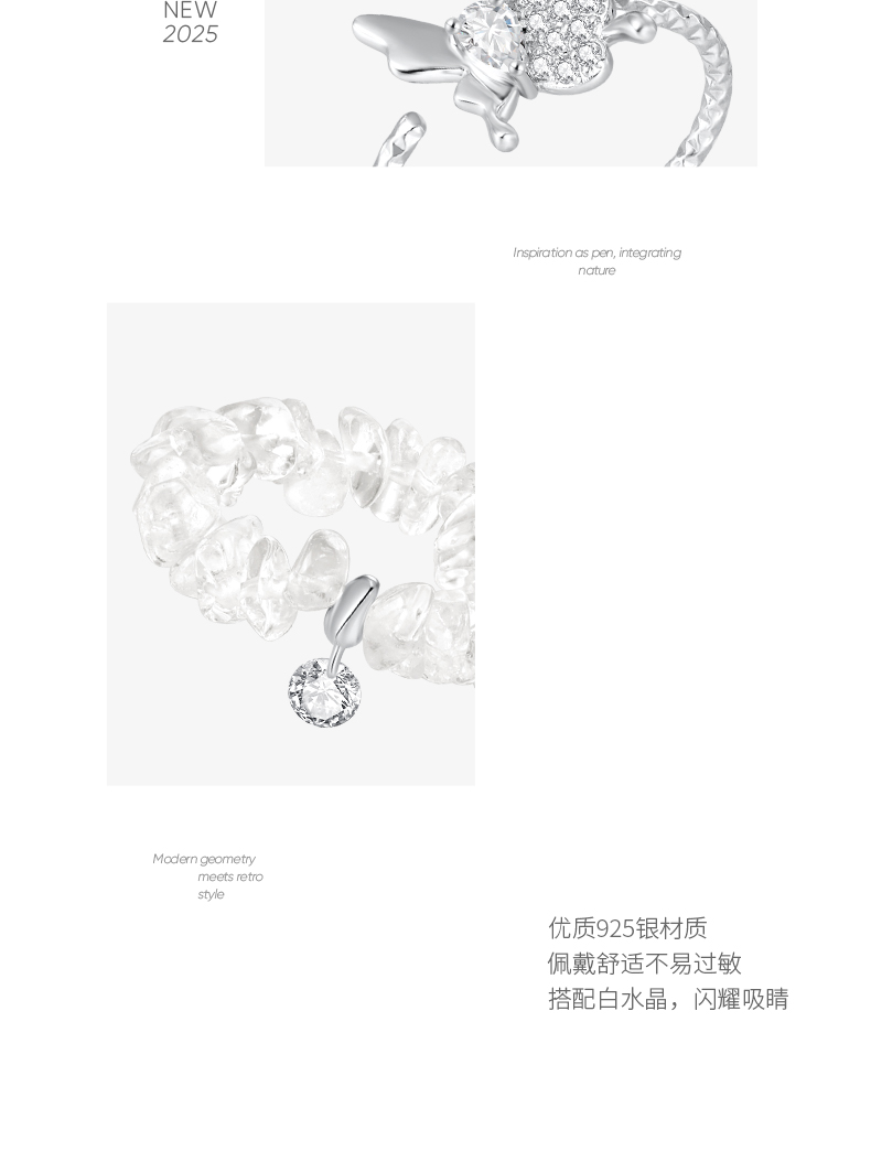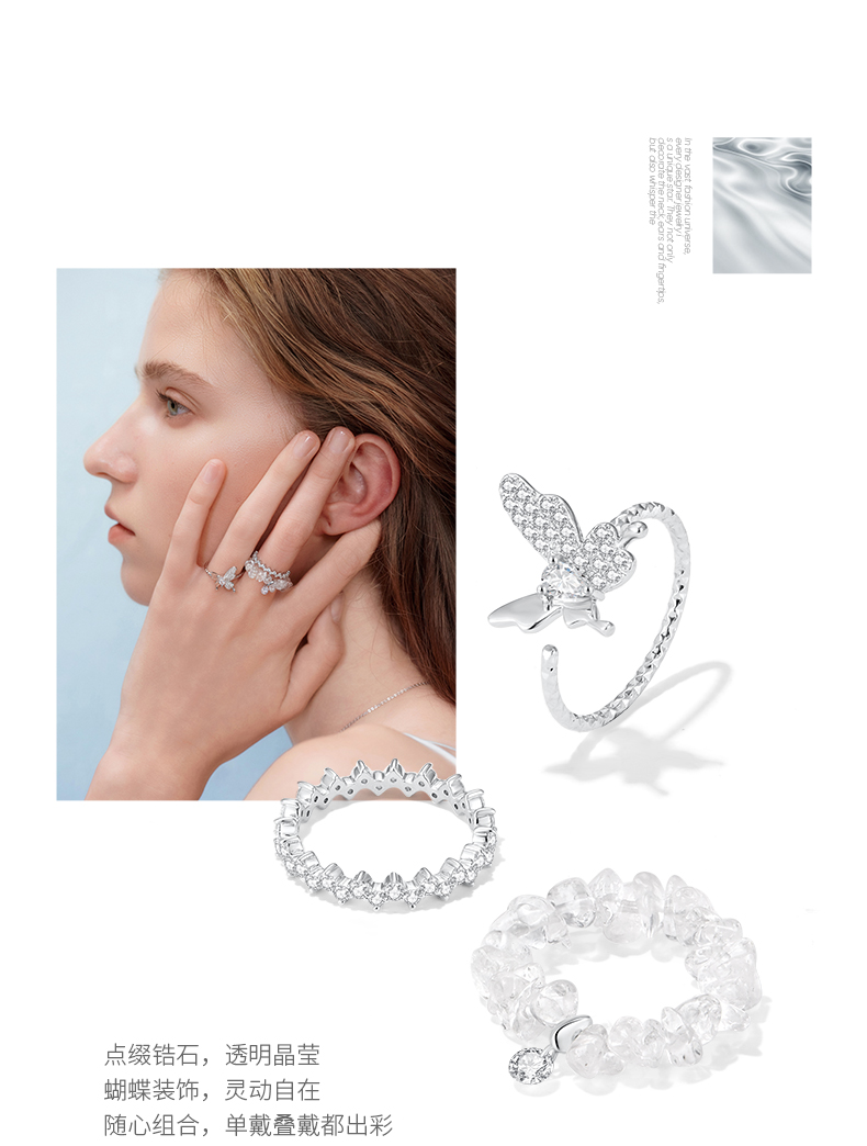 ZEGL设计师清梦系列天然白水晶蝴蝶戒指女小众设计轻奢叠戴食指戒