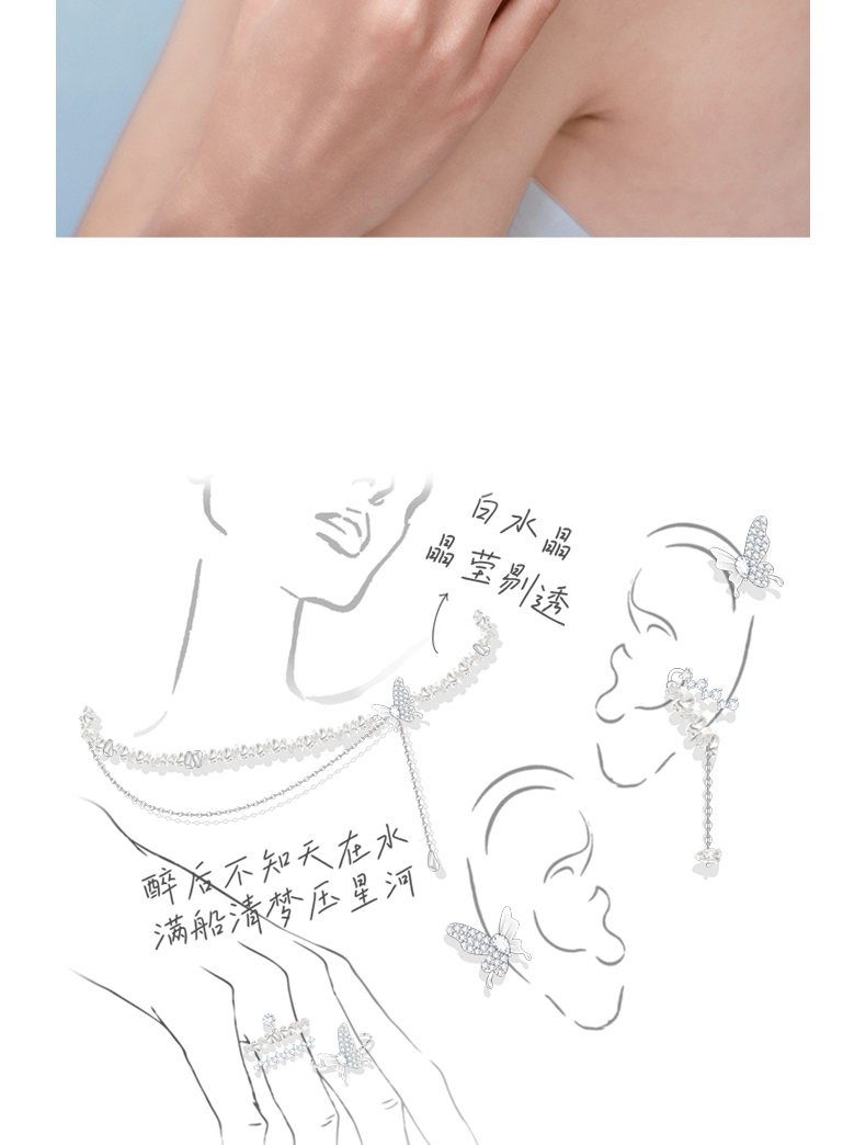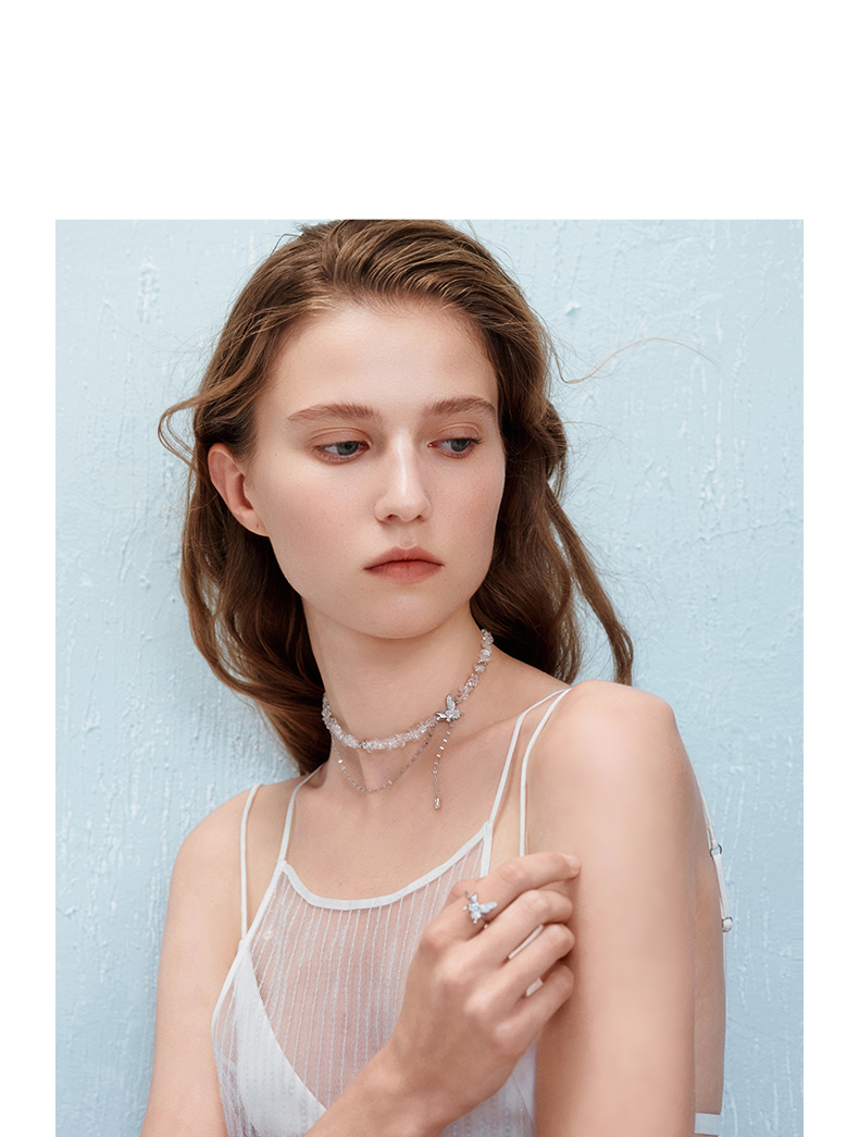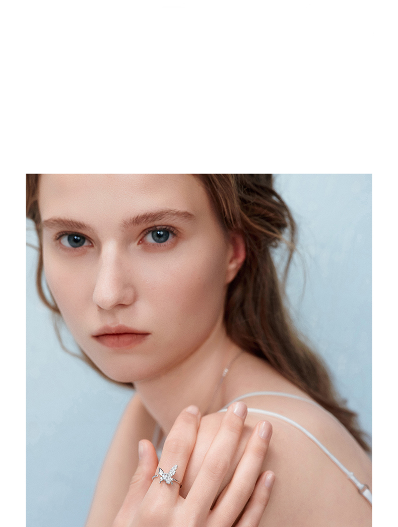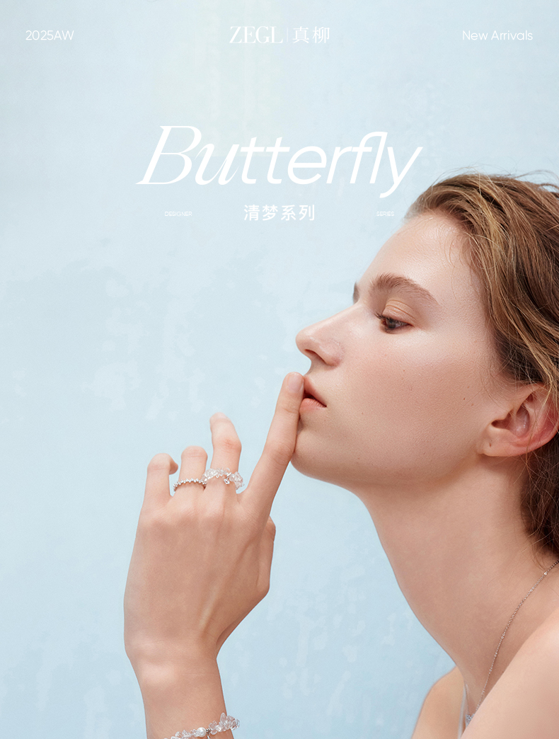 ZEGL设计师清梦系列天然白水晶蝴蝶戒指女小众设计轻奢叠戴食指戒
