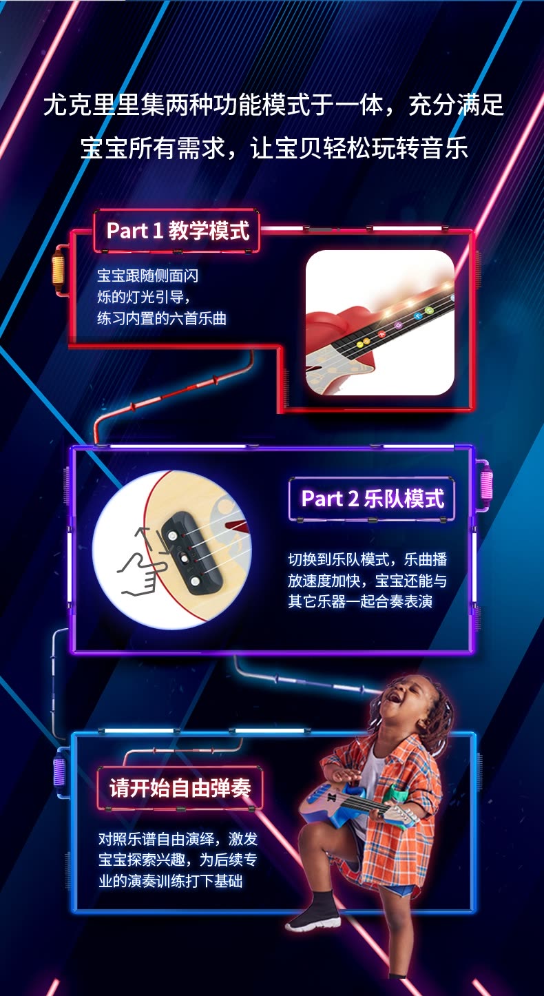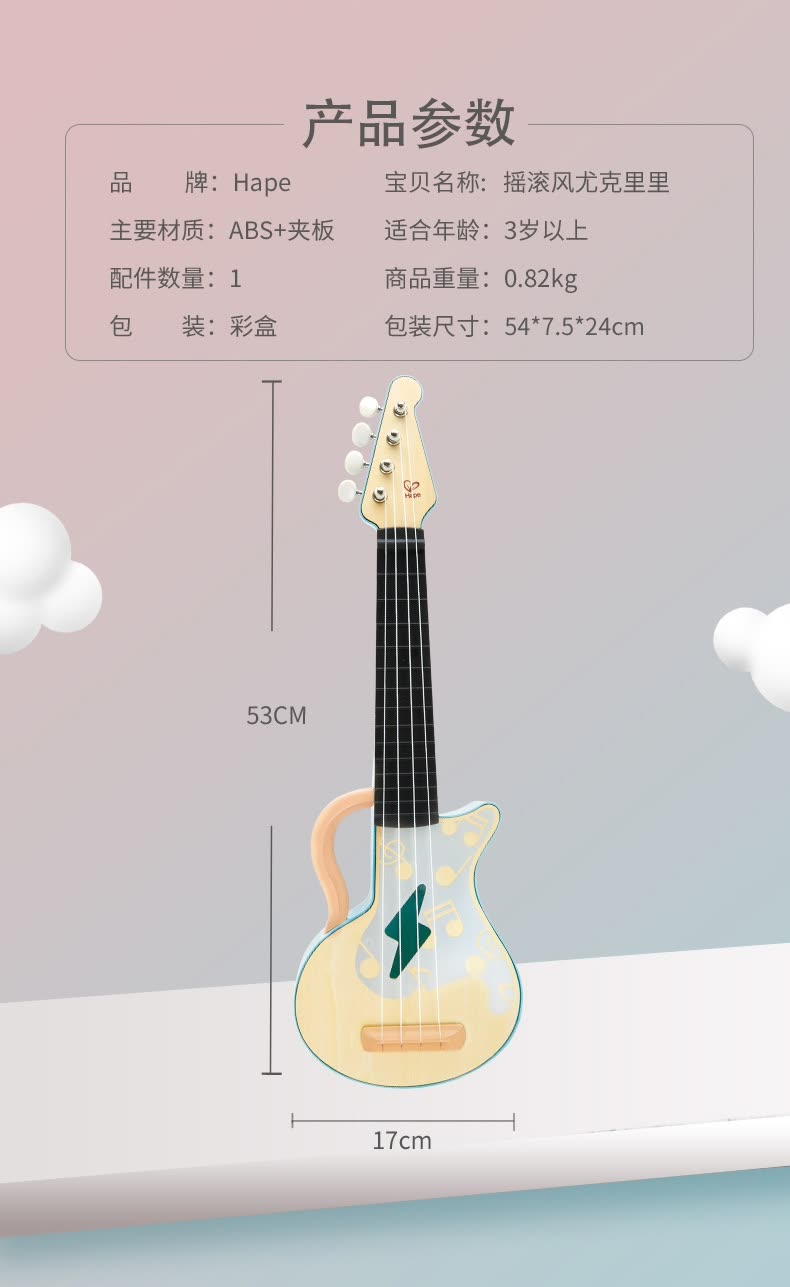 Hape尤克里里玩具-摇滚风尤克里里玩具E0626(1399积分兑换),仅做积分兑换,购买无效