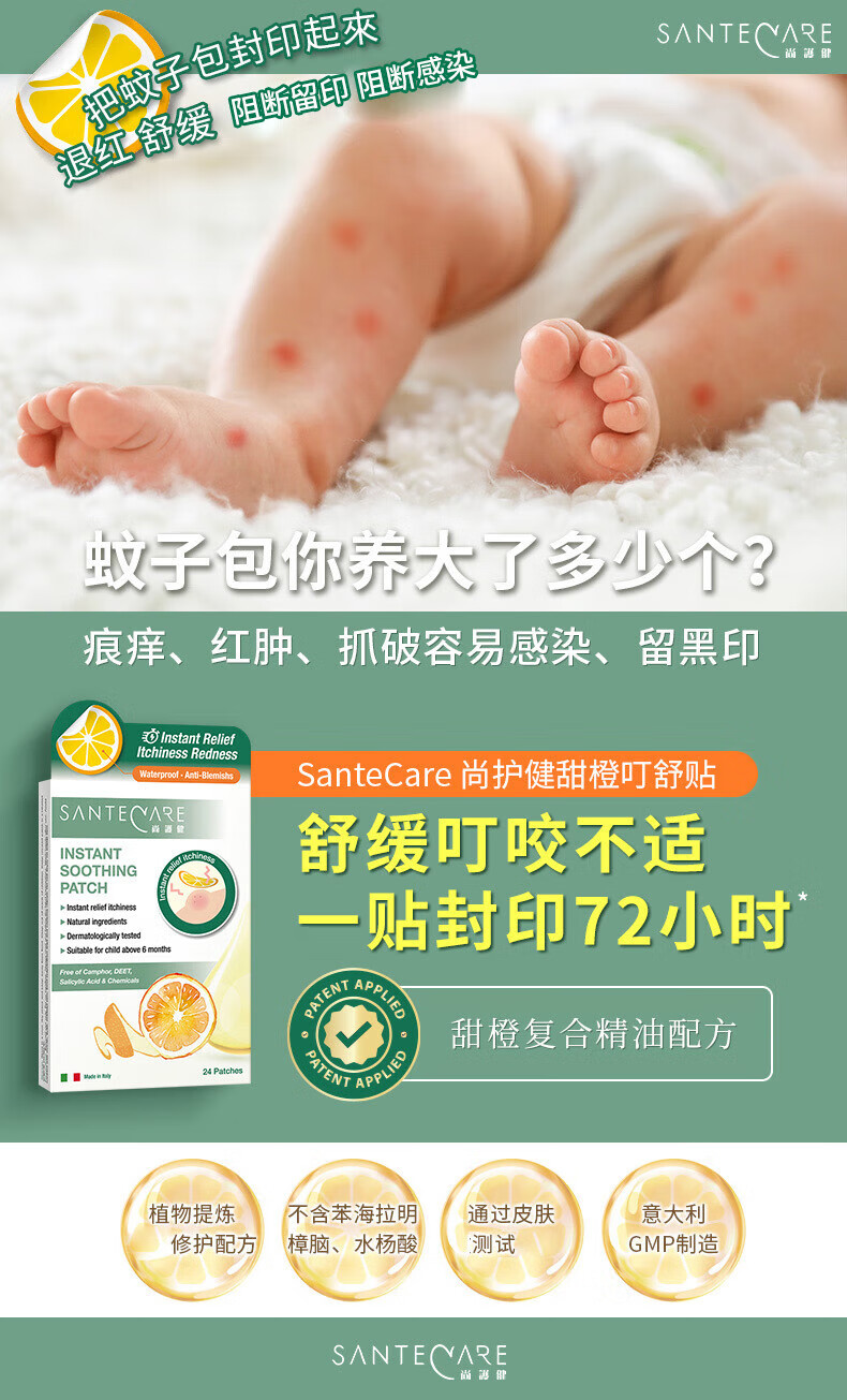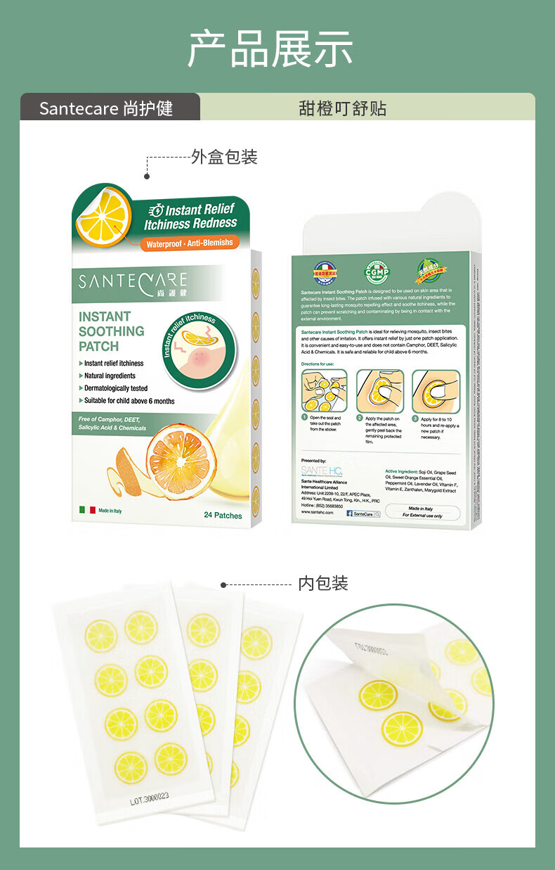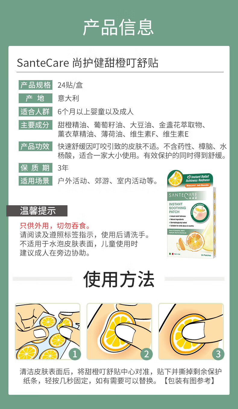 尚护健Santecare甜橙叮舒贴 24片 舒缓蚊虫叮咬止痒婴幼儿童成人适用