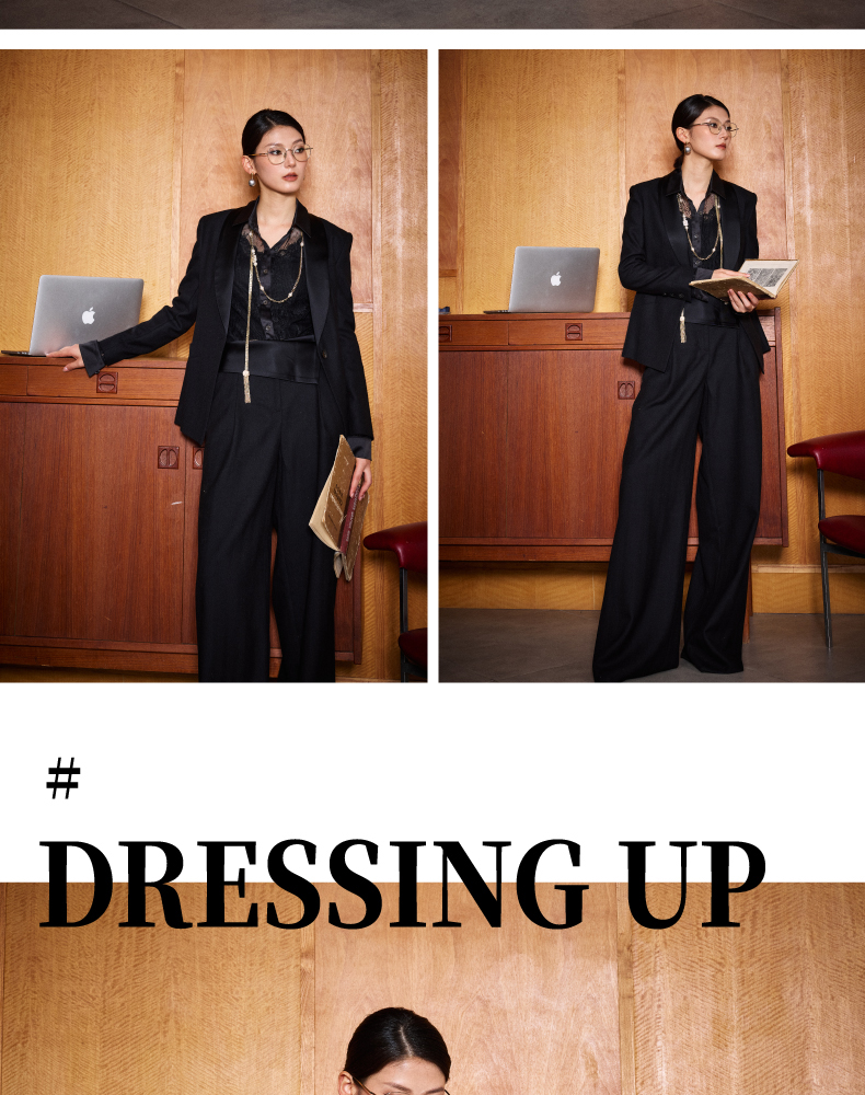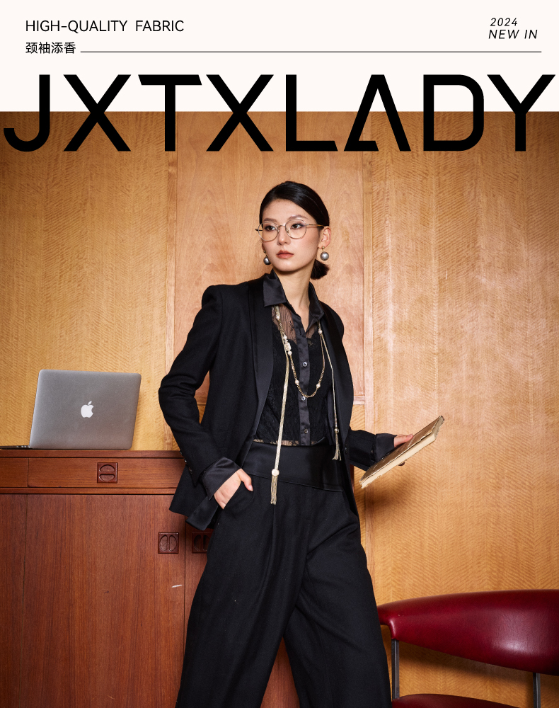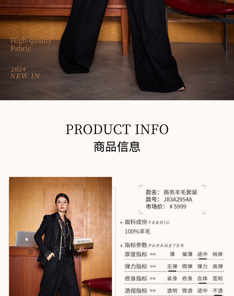 J83A2954A颈袖添香2019秋冬新款时尚修身气质羊毛西装女士一粒扣职业装套装J83A2954A